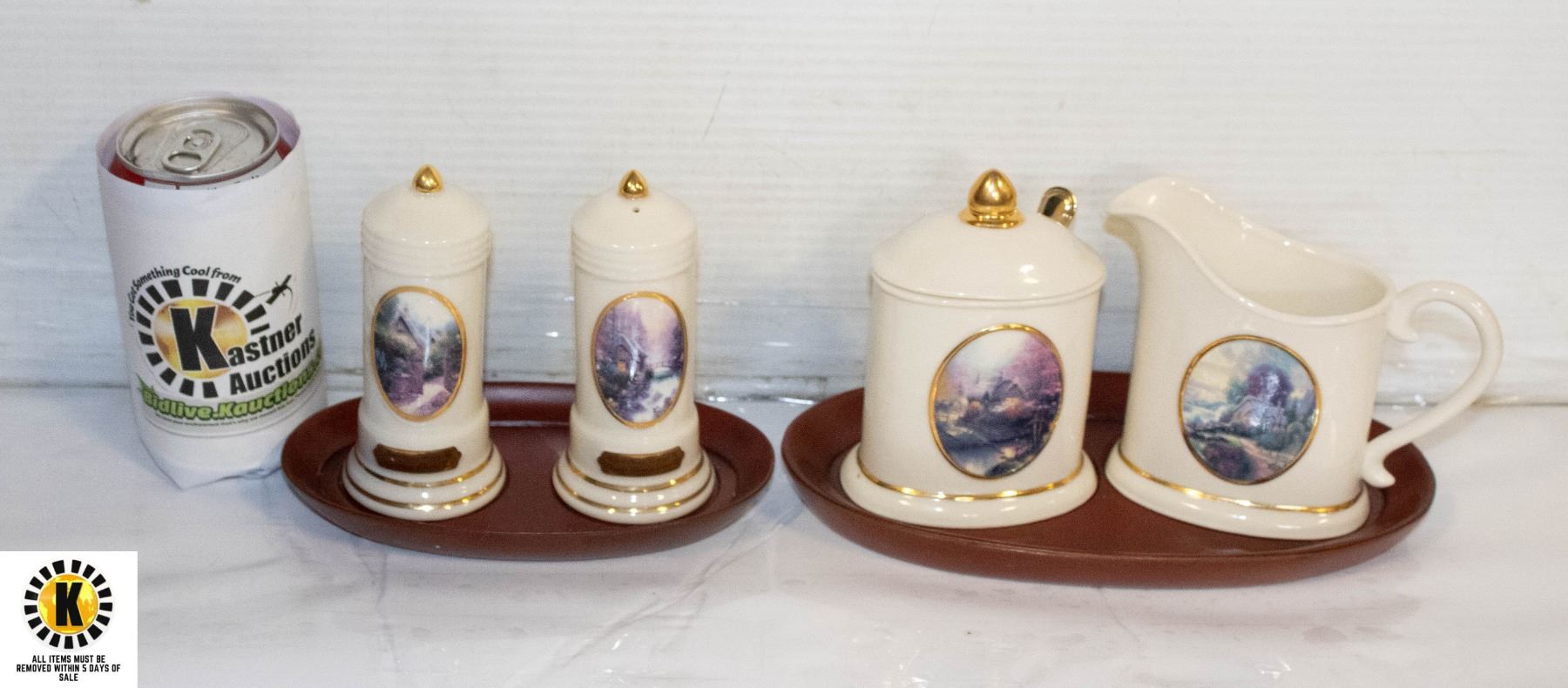 THOMAS KINKADE CREAM/SUGAR/SALT/PEPPER WITH TRAYS