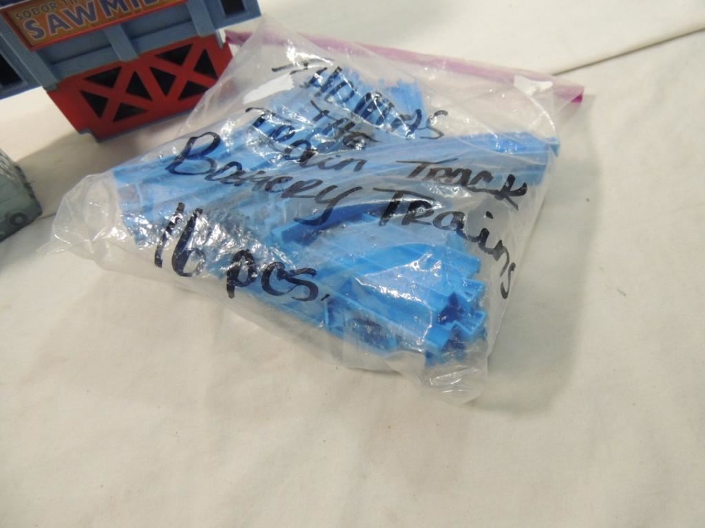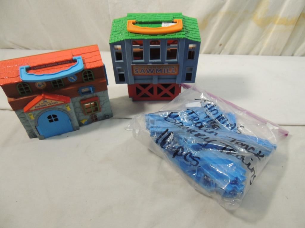 THOMAS SAWMILL & ENGINE WASH STATION TRAIN TRACKS. TRAIN NOT INCLUDED, PLAY SET, AS SHOWN SEE PHOTO FOR MORE DETAILS.