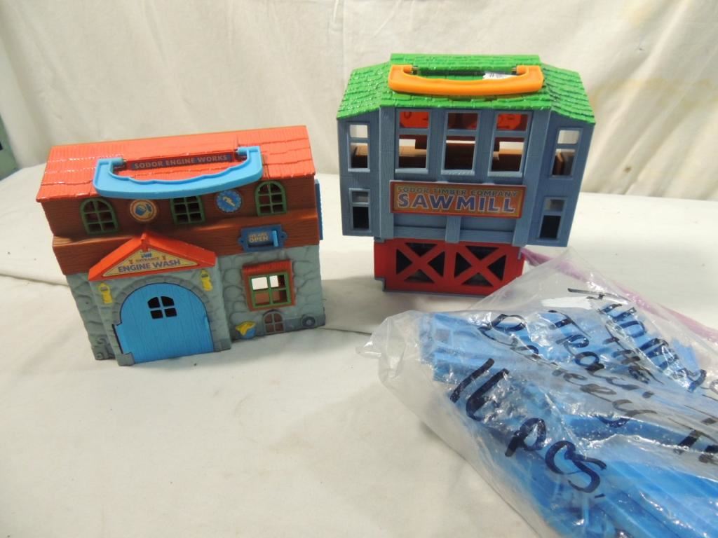 THOMAS SAWMILL & ENGINE WASH STATION TRAIN TRACKS. TRAIN NOT INCLUDED, PLAY SET, AS SHOWN SEE PHOTO FOR MORE DETAILS.