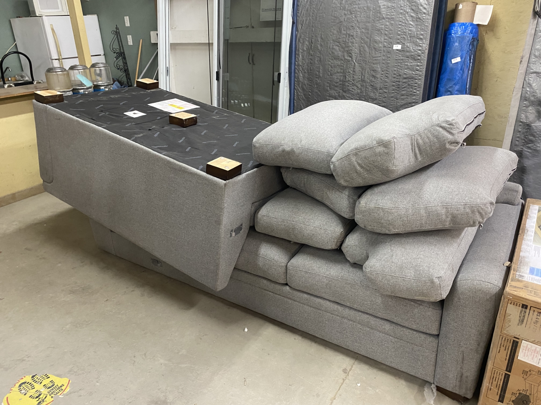 IS A LITTLE DIRTY IN SPOTS AND HAS 4 INCH TEAR ON ONE SIDE
