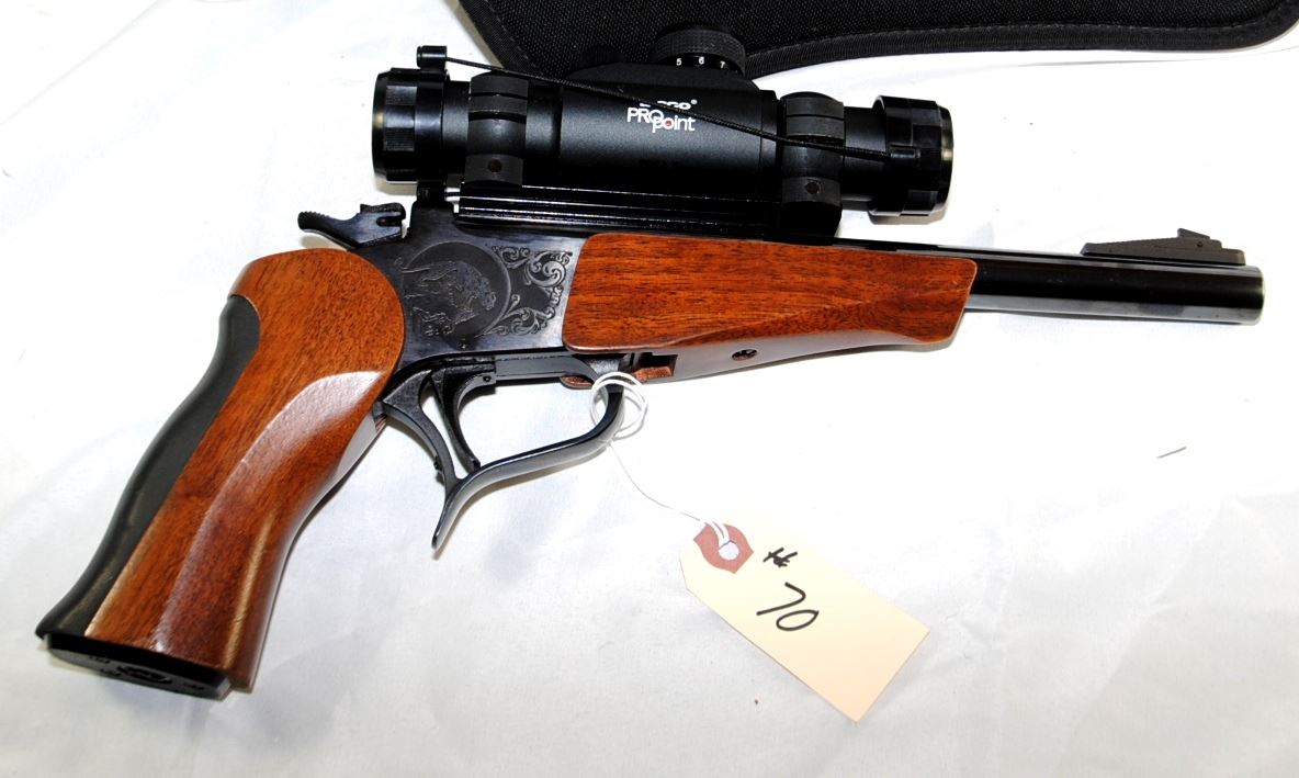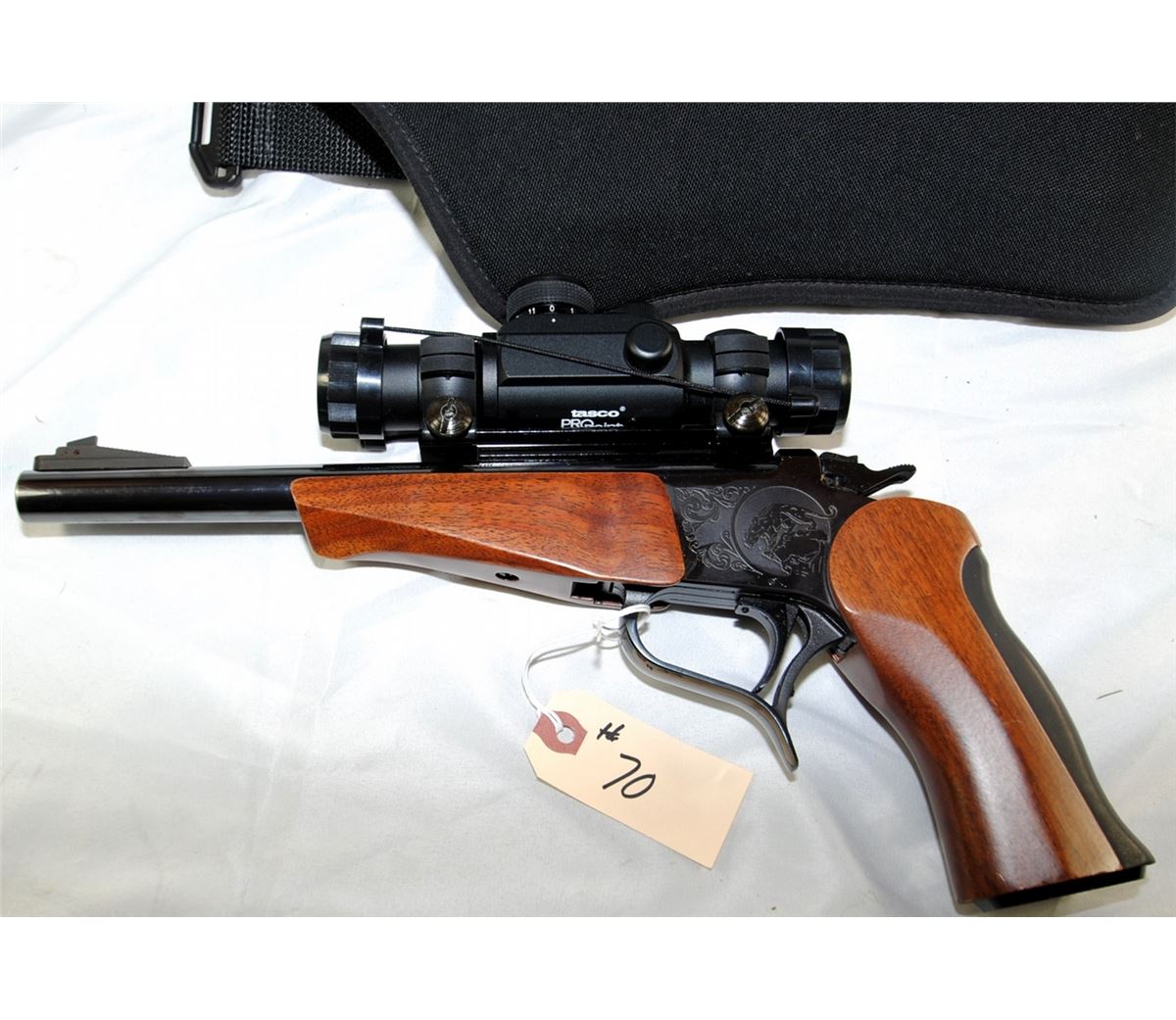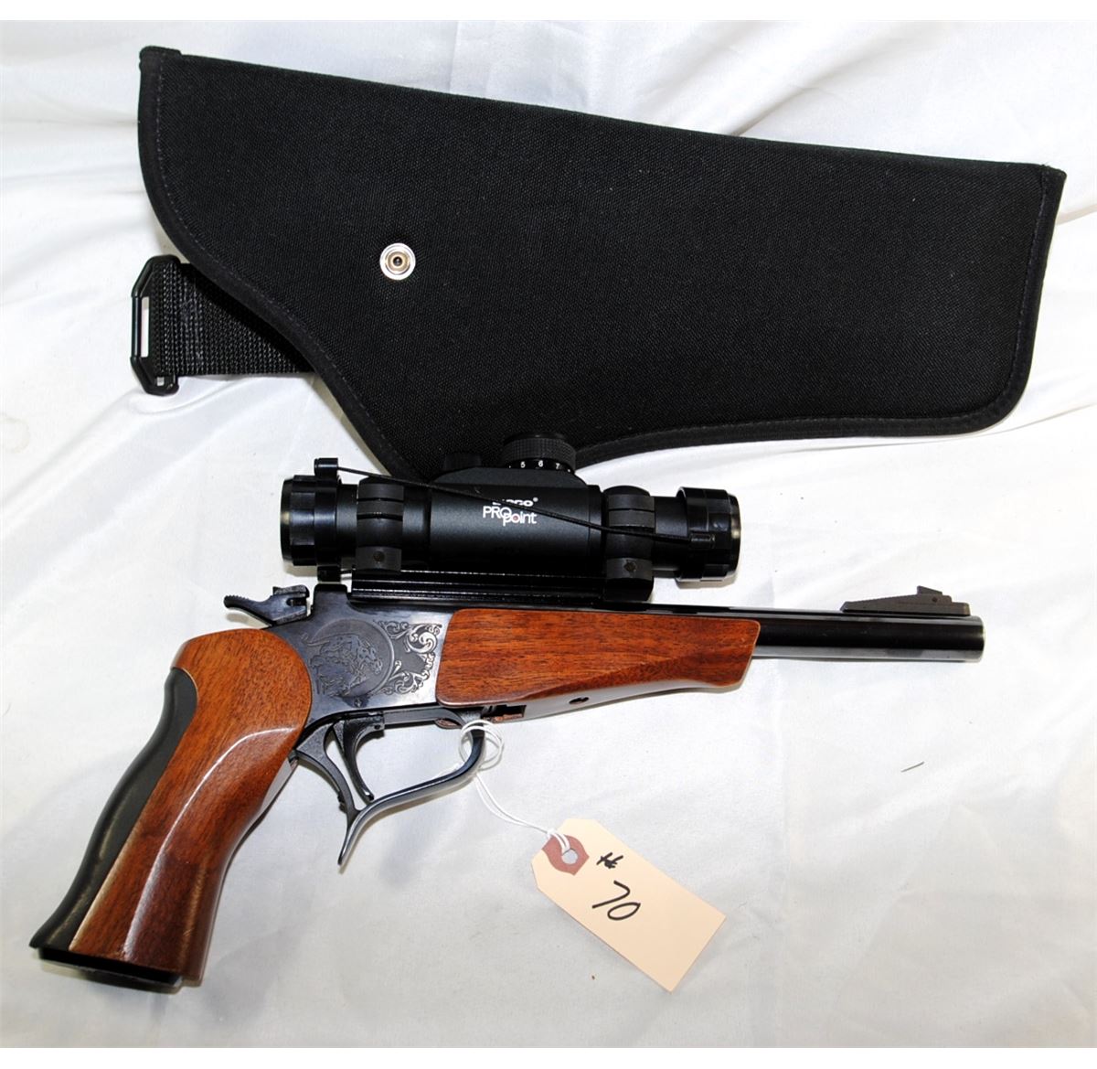 THOMPSON CENTER 30.30 WINCHESTER BARREL PISTOL WITH TASCO PRO POINT SCOPE AND HOLSTER - SERIAL # 443462