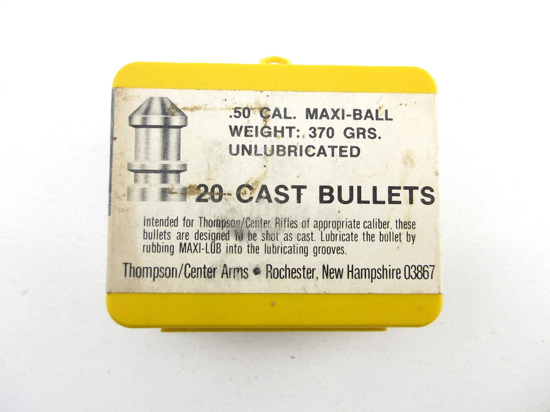LOT INCLUDES; APPROX. (20) CAST BULLETS, APPROX. DIA .508", 370 GRNS (STATED ON BOX NOT CONFIRMED) MAXI-BALL, UNLUBRICATED.