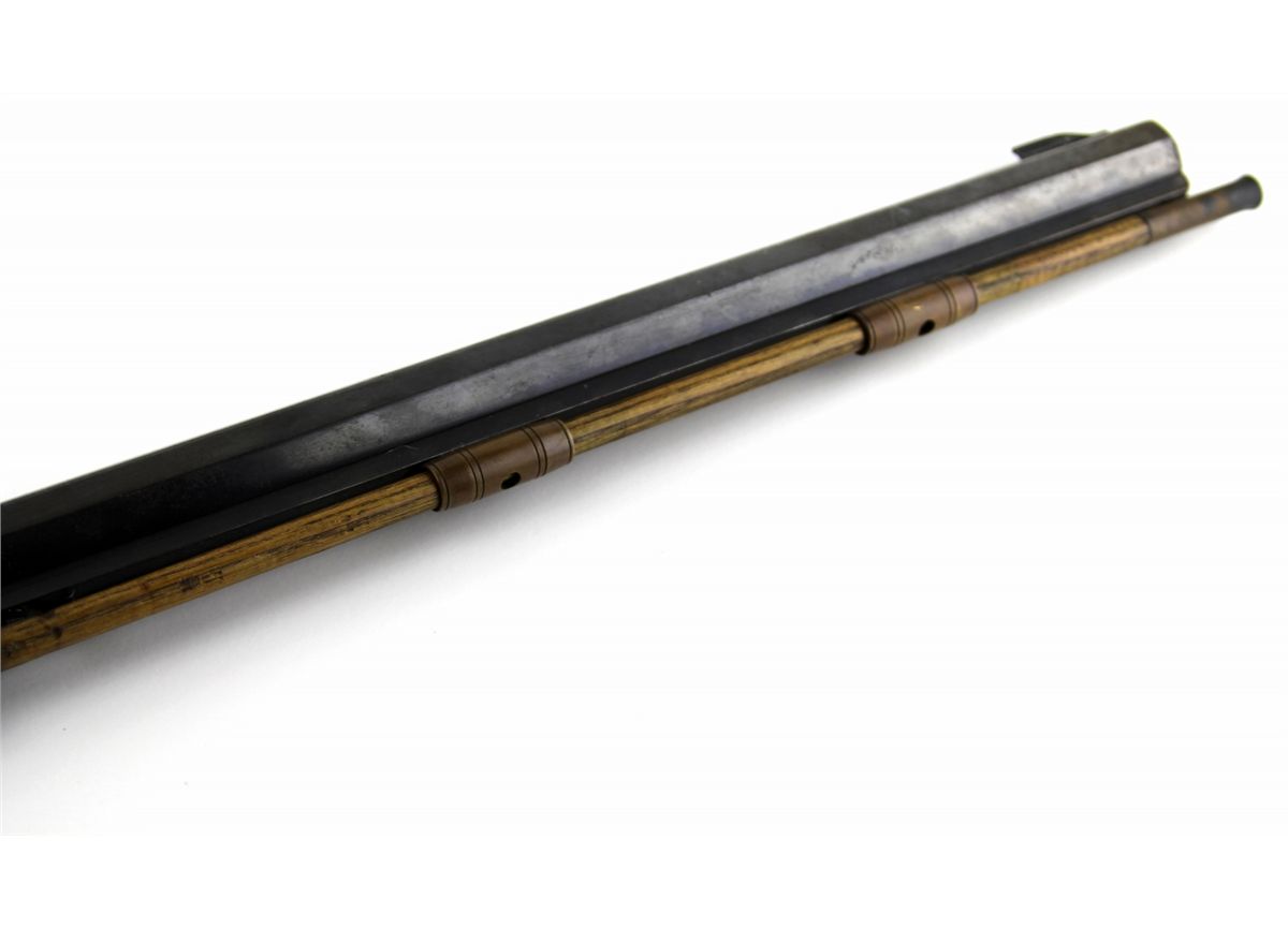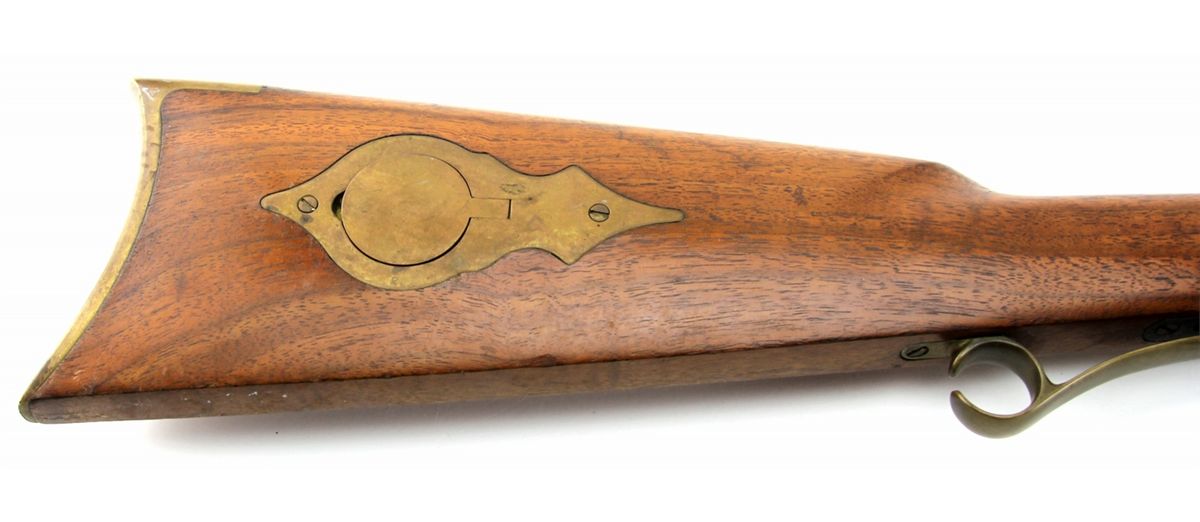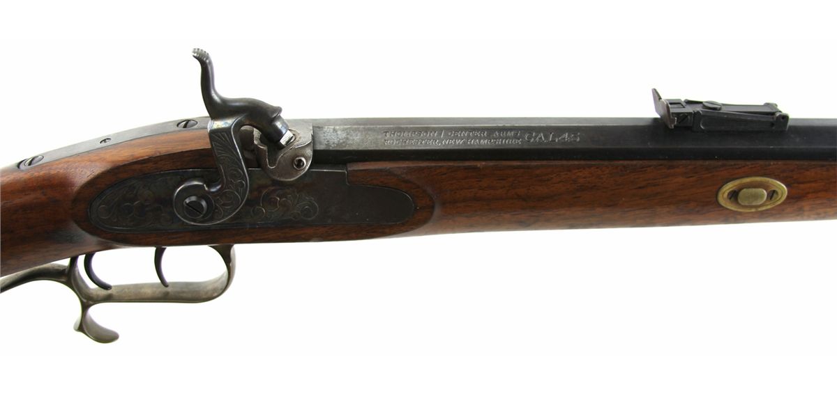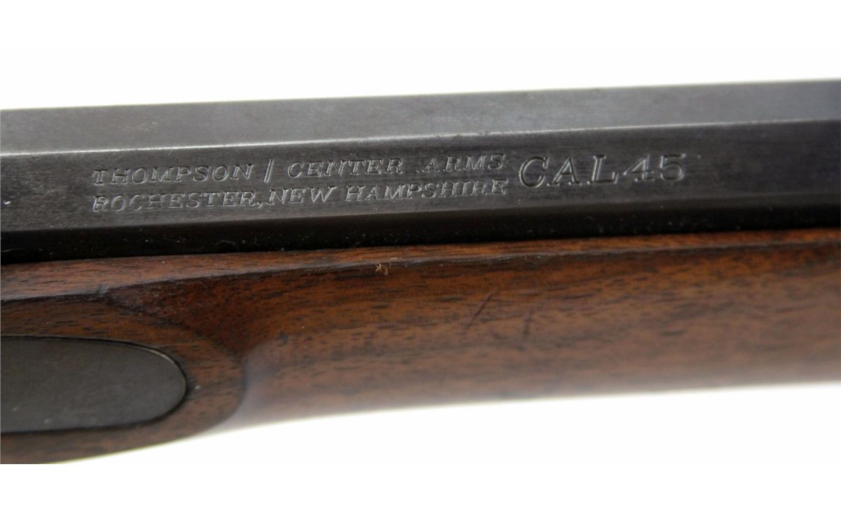 THOMPSON CENTER ARMS .45 PERCUSSION RIFLE Thompson Center Arms percussion rifle n .45 caliber. 29 inch octagon barrel, set trigger, and brass hardware. Type: percussion rifle Manufacturer: TC Barrel Length: 29 inch Serial Number: 168561 Condition: Bluing about 75%, with some Losses and wear. Minor handling marks to stock. Overall good condition.