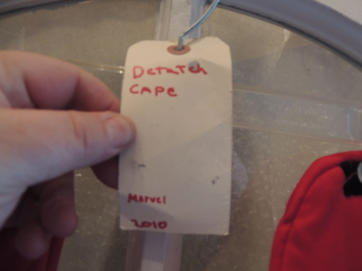 This is a SCREEN USED & MATCHED HERO cape from THOR! "Stamped THOR 1 inside" [Not Written] and includes the original wardrobe tag shown.