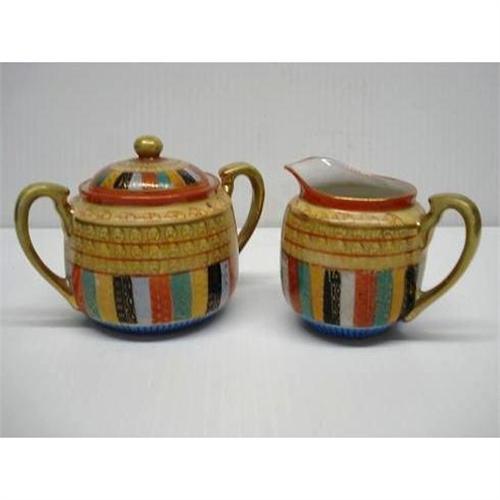 THIS IS RARE TYPE OF ORIENTAL CHINA, ALL HAND PAINTED AN MADE IN JAPAN,EACH PIECE APPARENTLY IS PAINTED WITH THOUSAND FACES, LOVELY VIBRANT COLORS GILTED IN GOLD, ON CLOSE INSPECTION YOU CAN SEE THE AMAZING ART WORK IN FINEST DETAIL, THIS TYPE OF CHINA IS HARD TO FIND AND IT IS HIGHLY COLLECTIBLE, AND IT IS IN EXCELLENT CONDITION,BUT FOR A CHIP - INSIDE THE LID = as per images - BOWL MEASURES ABOUT 3 1/2" HIGH AND JUG STANDS 3" HIGH, US BUYER TO PAY 8.00 FOR SHIPPING PLUS INSURANCE.THANKS.