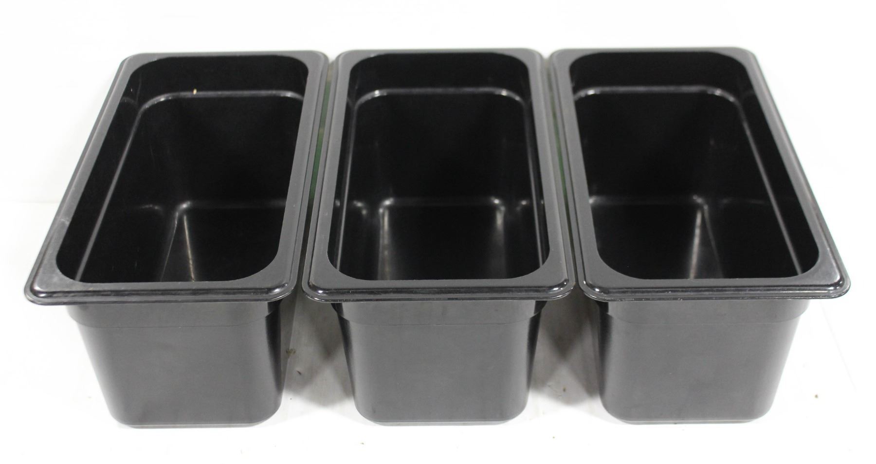THREE 1/3 SIZE CAMBRO POLYCARB FOOD INSERTS- 6"