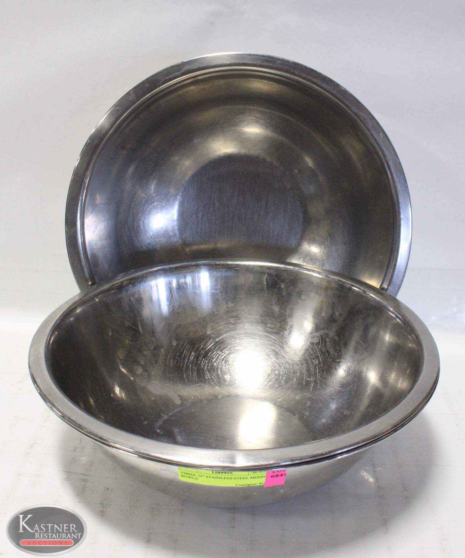 THREE 12" STAINLESS STEEL MIXING BOWLS