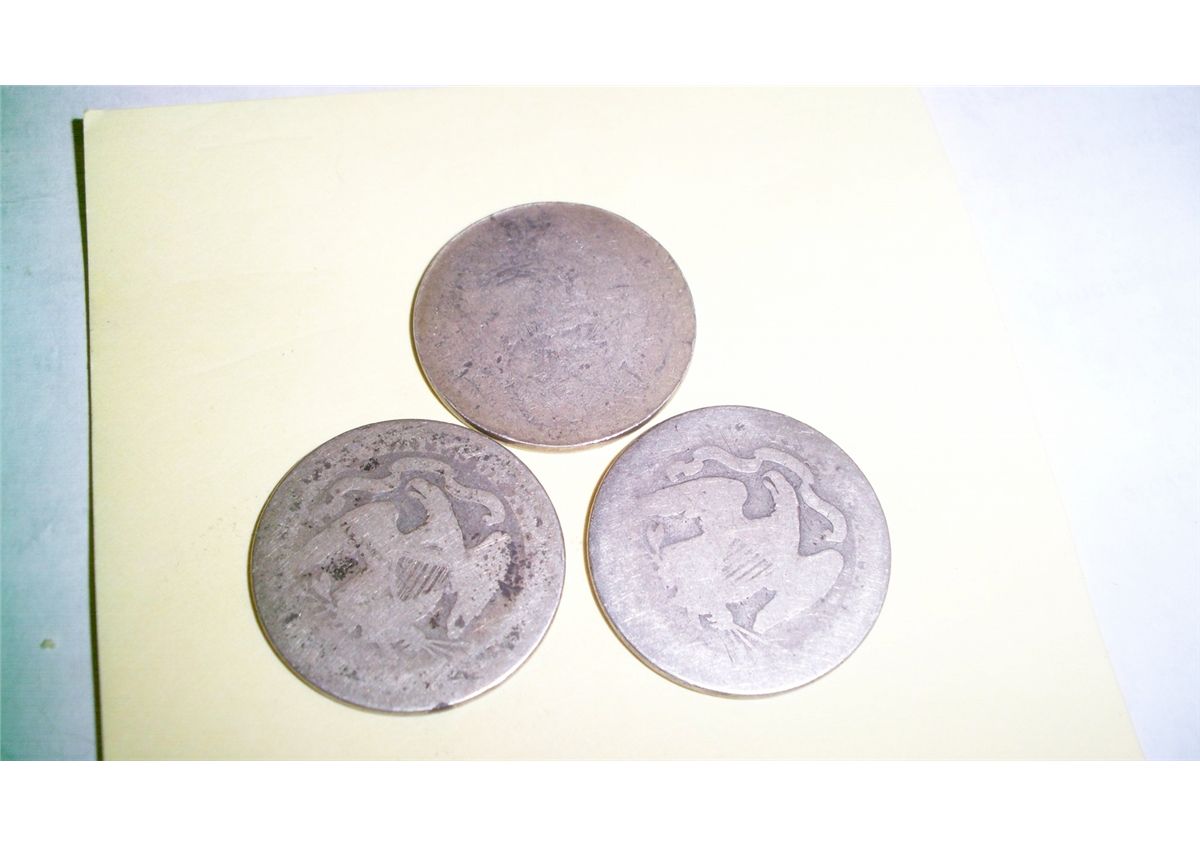 THREE 1891 SEATED LIBERTY SILVER QUARTERS