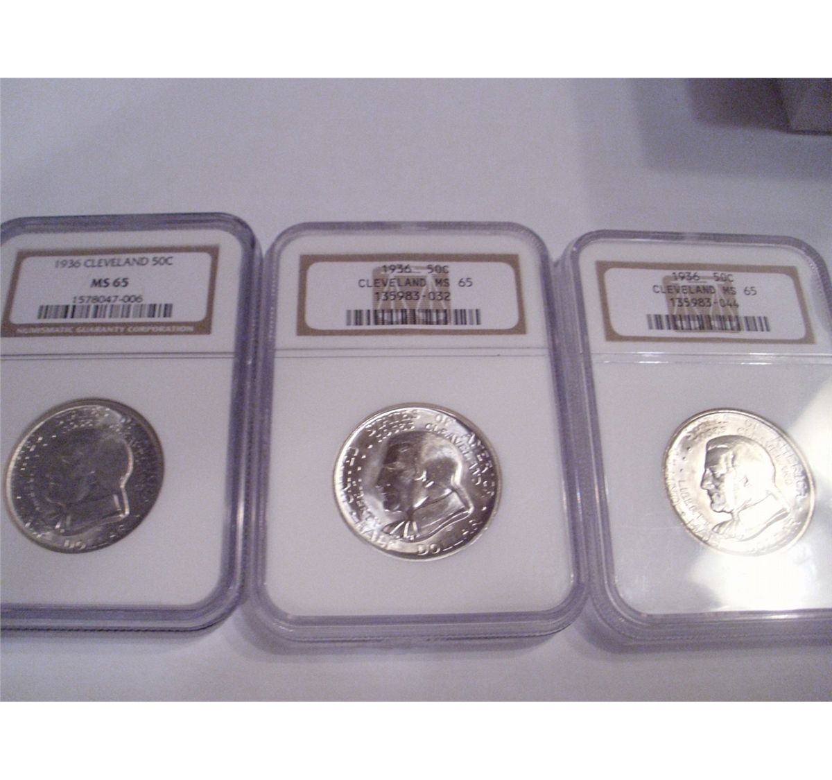 THREE 1936 CLEVELAND CENTENNIAL HALF DOLLARS NGC MS-65