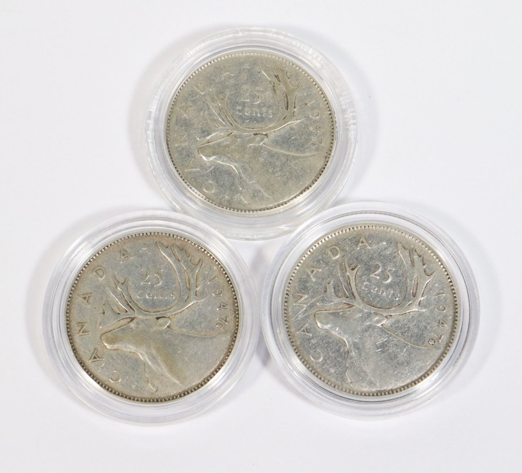 THREE 1947 CANADA .25CENT IN CAPSULES, 0.45-OZ