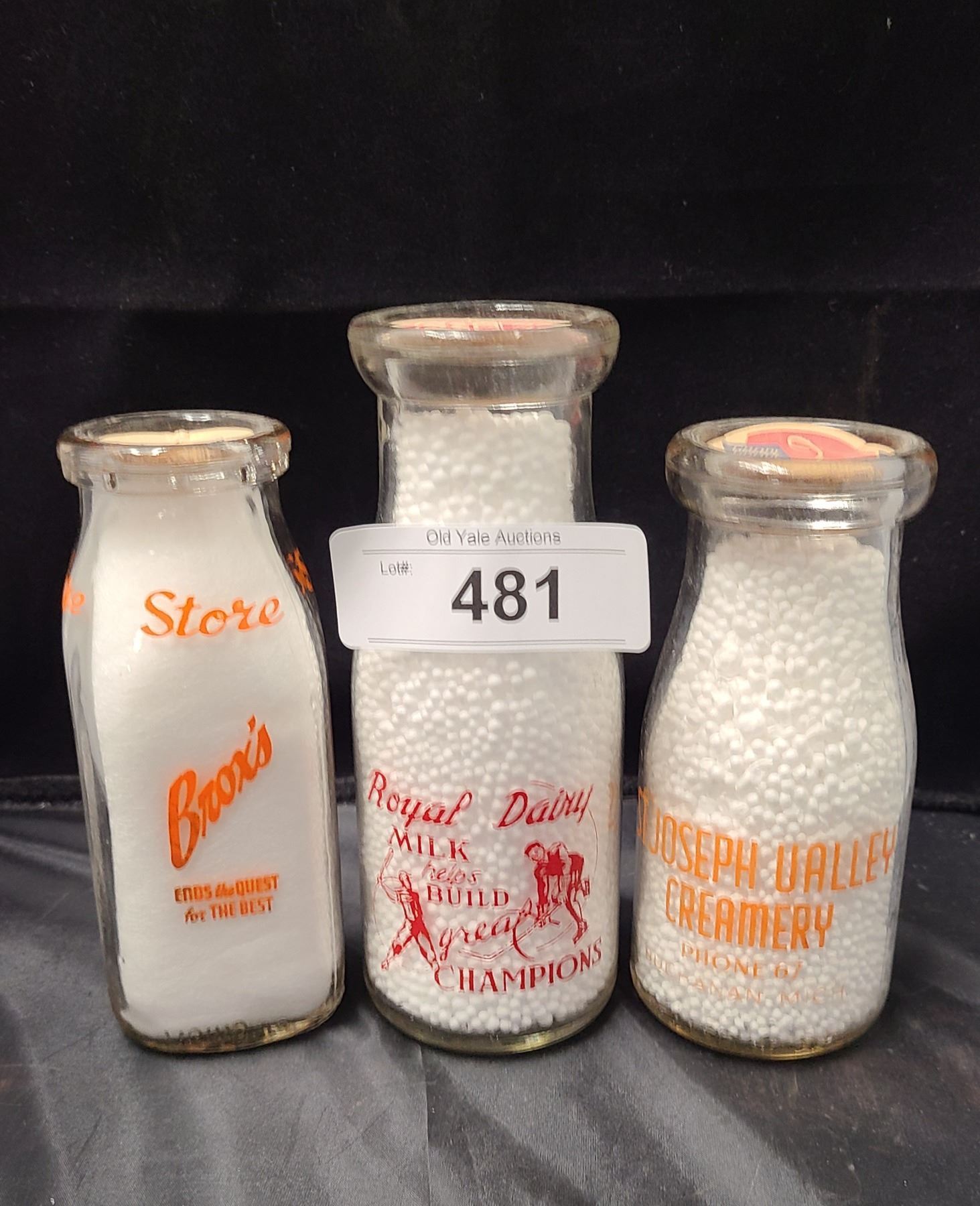 THREE 1950'S DAIRY PINT CREAM BOTTLES