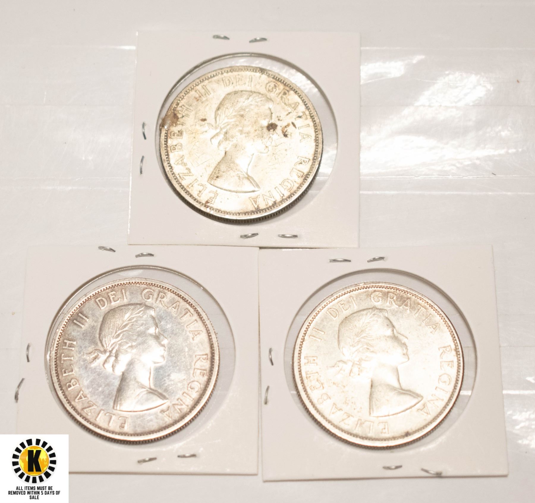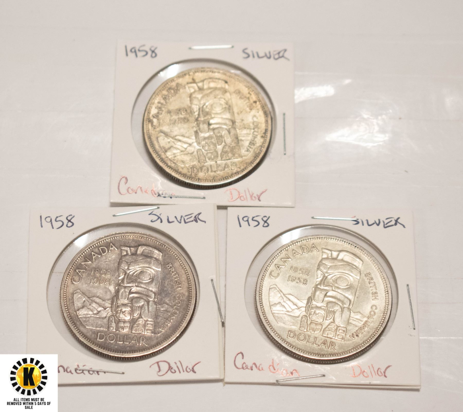 THREE 1958 SILVER CANADIAN DOLLARS