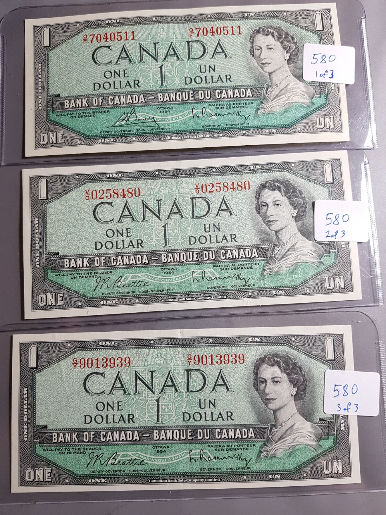 THREE (3) 1954 $1 BILLS, EF TO AU