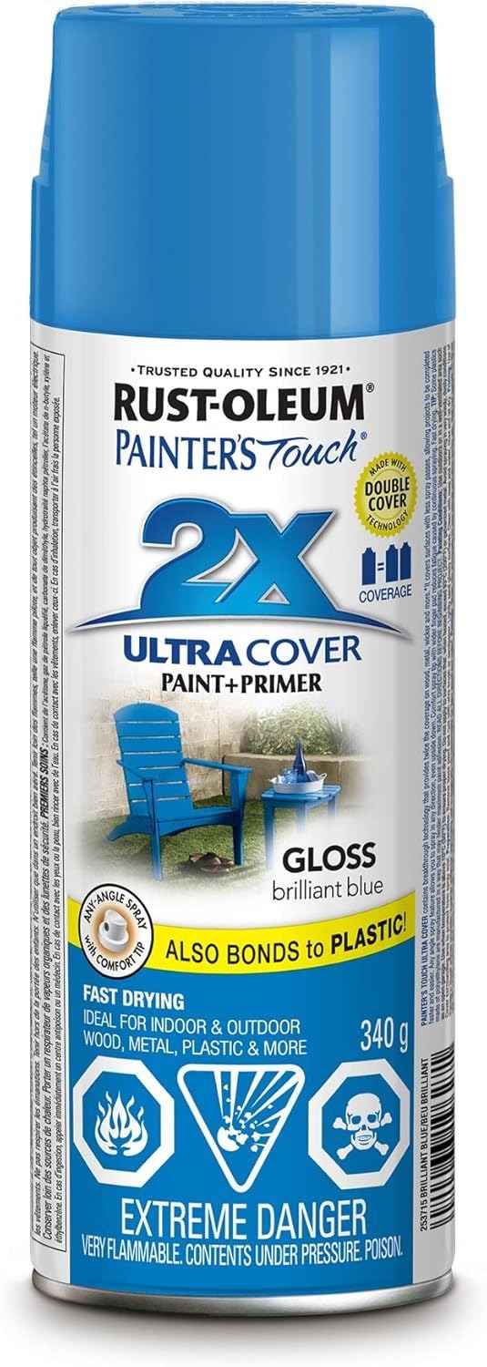 THREE 340G CANS OF RUST-OLEUM GLOSS BRILLIANT BLUE