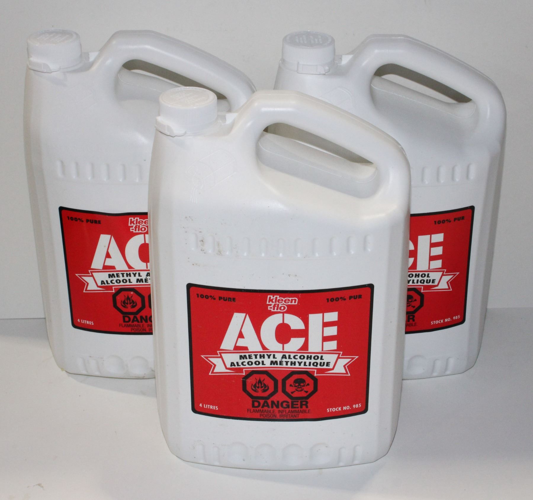 THREE 4L JUGS OF KLEEN FLO ACE METHYL ALCOHOL