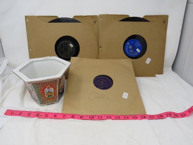 THREE 78 RPM RECORDS & PLANT POT (MARKED JAPAN)