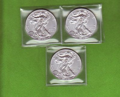 THREE .999 PURE SILVER ONE TROY OZ AMERICAN EAGLES