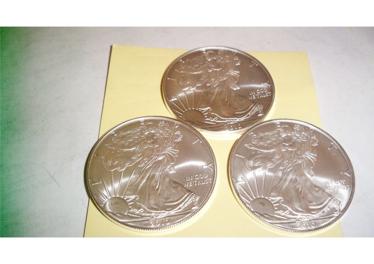 THREE .999 PURE SILVER ONE TROY OZ AMERICAN EAGLES