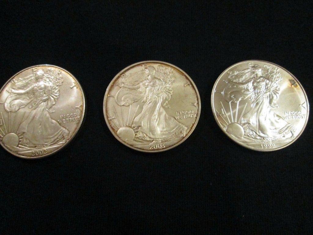 THREE .999 PURE SILVER ONE TROY OZ AMERICAN EAGLES