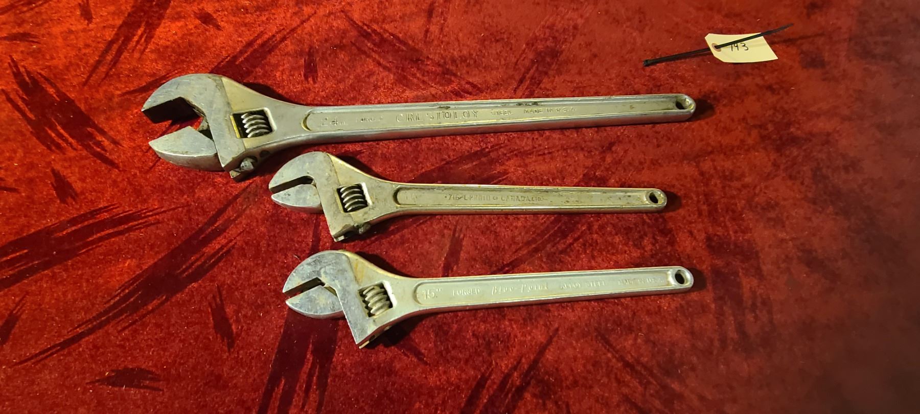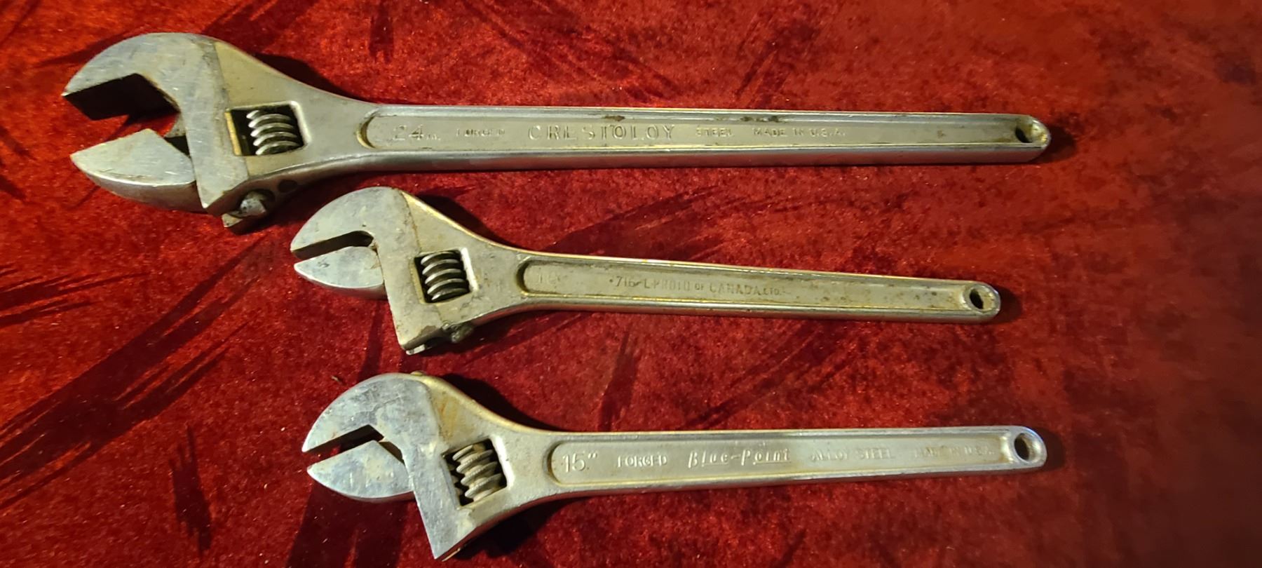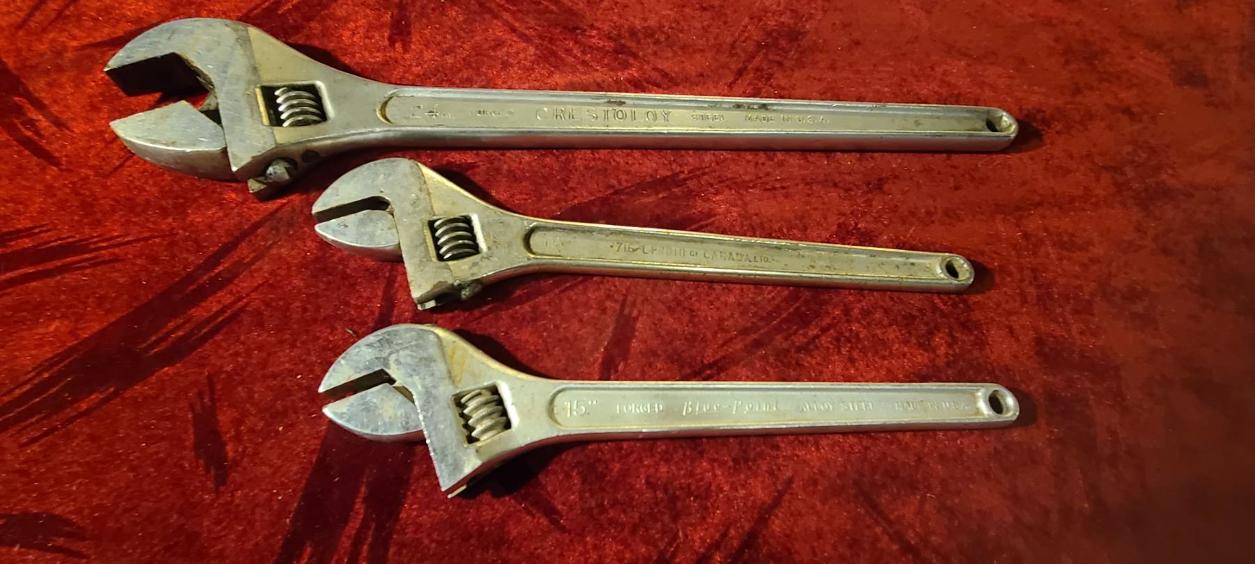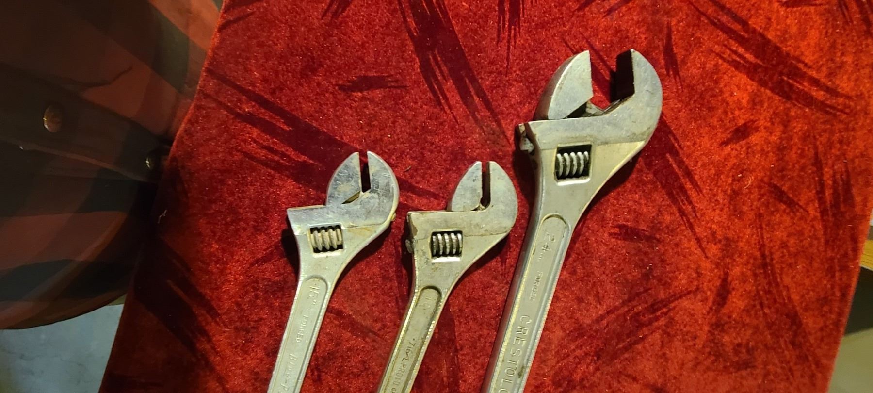 THREE ADJUSTABLE WRENCHES- 24" 16" AND 15"