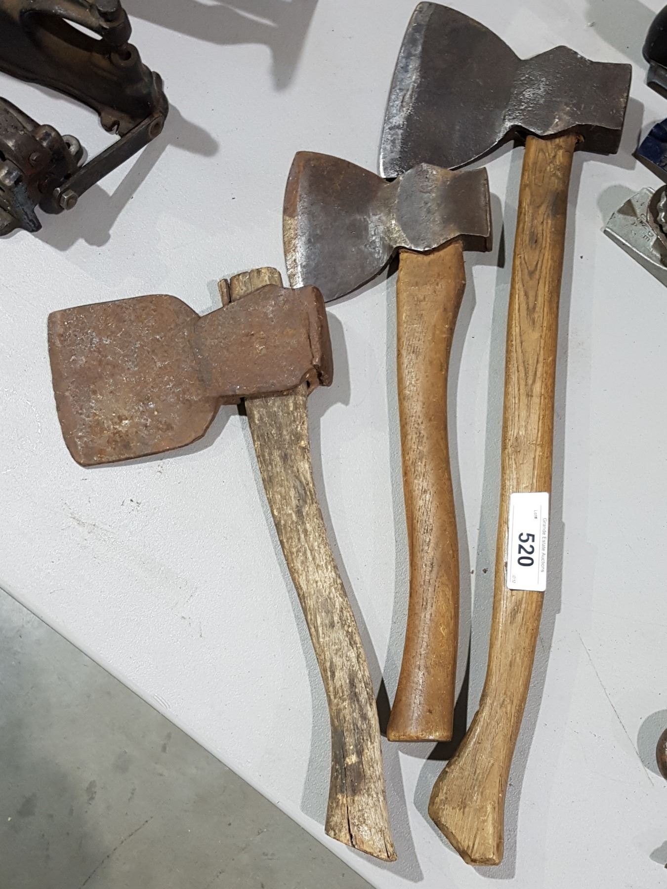 THREE ANTIQUE BROAD BLADE HATCHETS