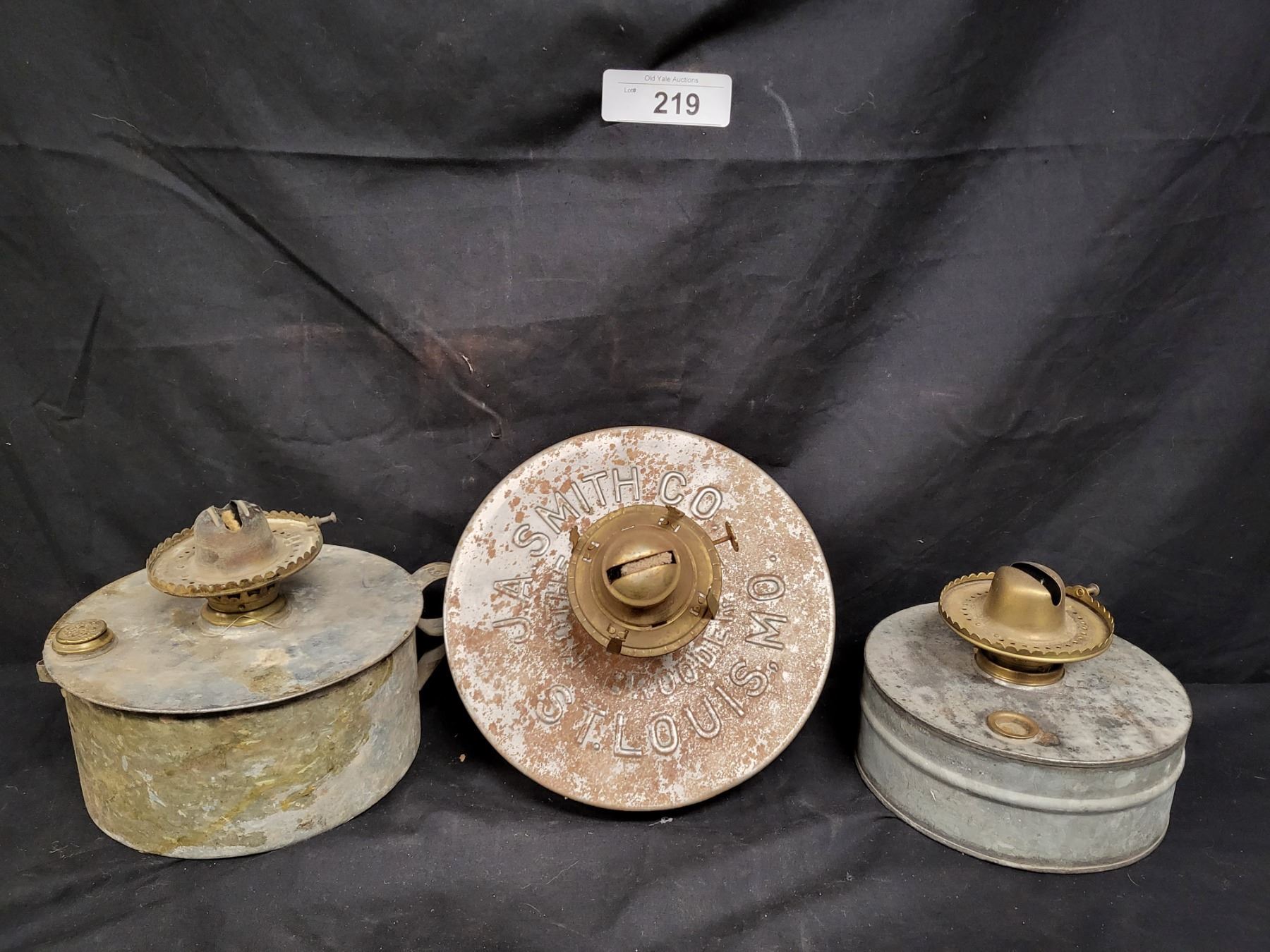 THREE ANTIQUE LANTERN BASES, NO CHIMNEYS
