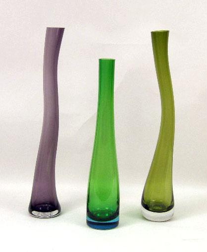 THREE ART GLASS FREE-FORM TALL VASES
