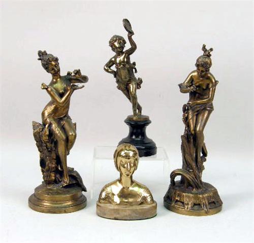 Consisting of a pair of scantily-draped women and a preening young girl. Together with a gilt-metal bust of a Renaissance-era woman. 4 pieces.