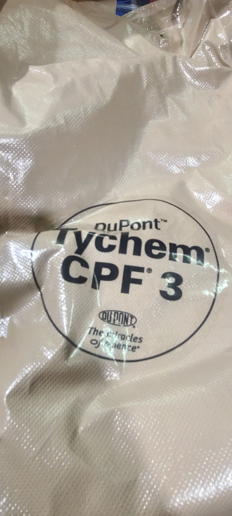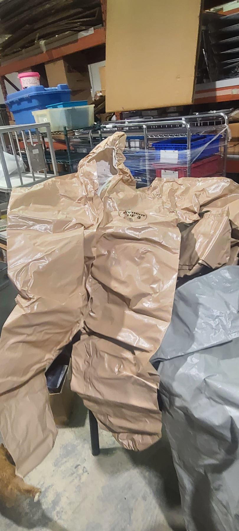 THREE BEIGE DUPONT TYCHEM CPF-3 SUITS SIZE: 2X AND ONE GREY SIZE 3X