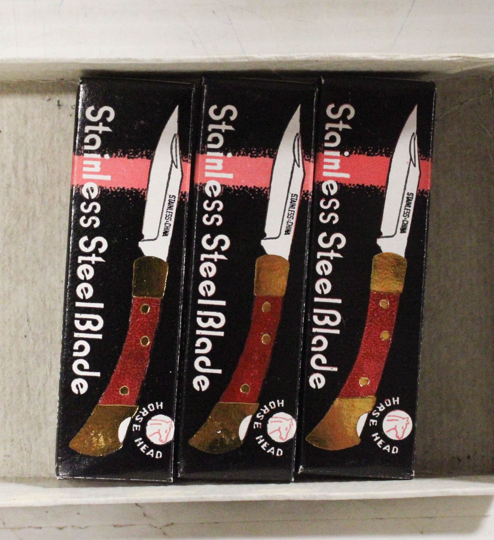 THREE BLACK BLADE FOLDING STAINLESS BLADE KNIFE