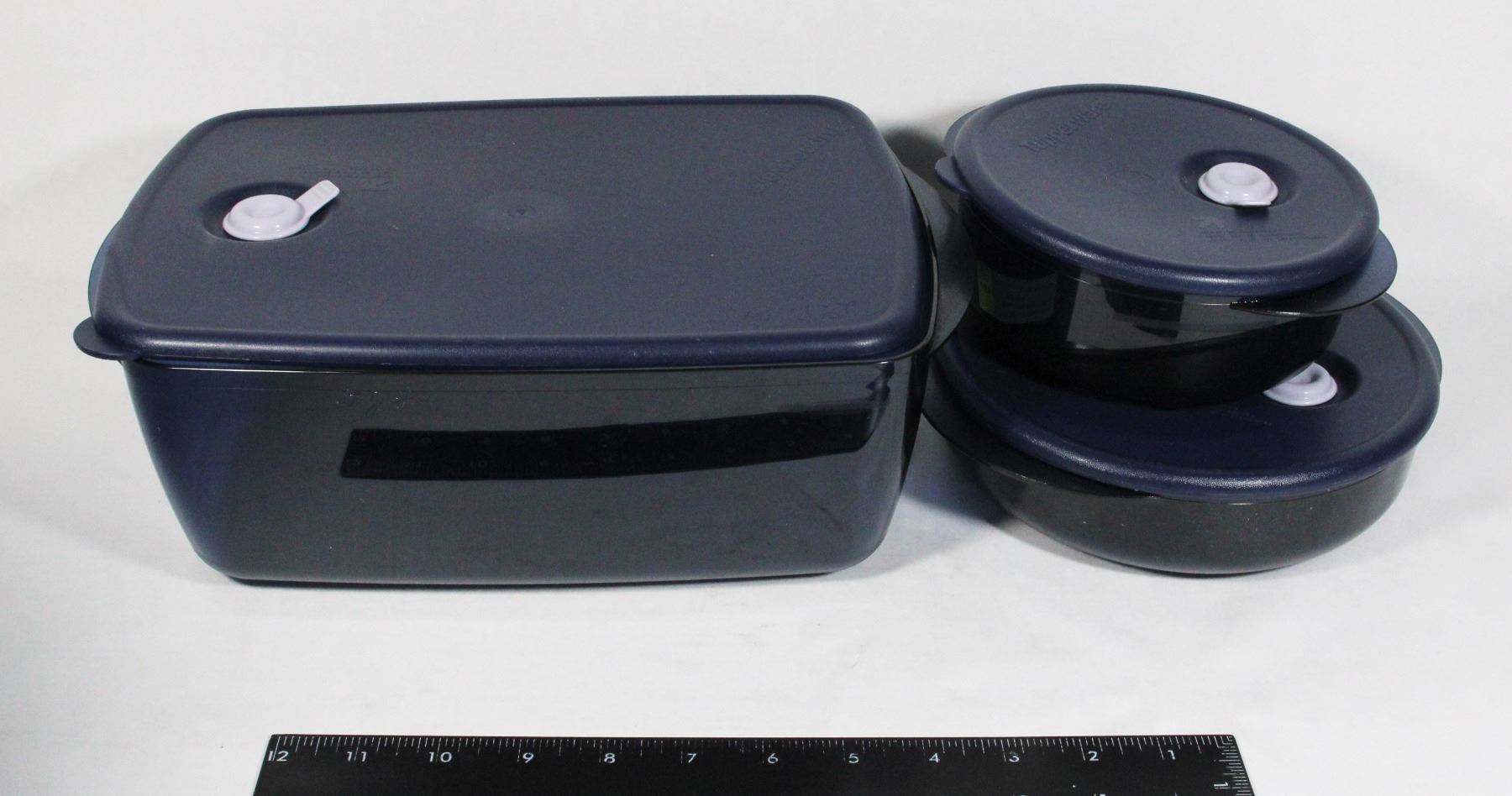 THREE BLUE MATCHING TUPPERWARE CONTAINERS WITH