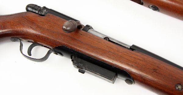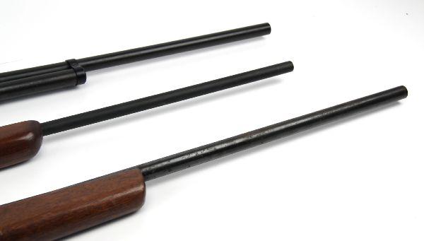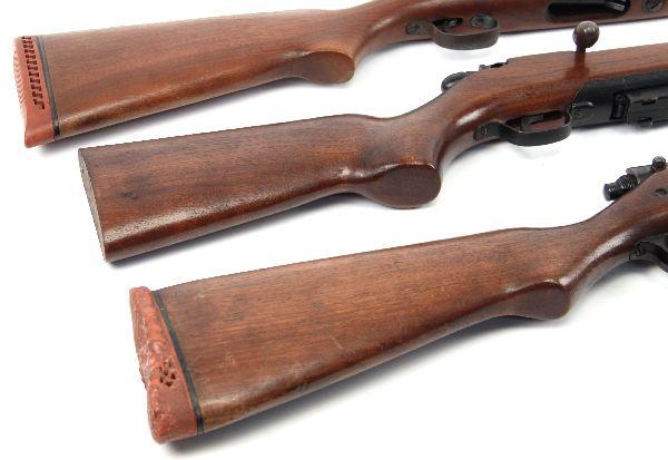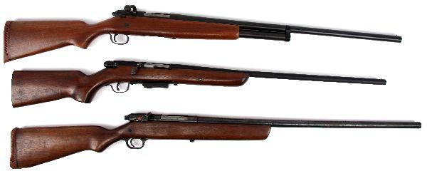 Dealer lot of three bolt action shotguns. A 12 gauge JC Higgins Model 583.20, bore bright and clean, light field wear on stock, and about 60% finish with light rust; an H&R Model 348 "Gamester" 12 gauge, with some pitting to bore, some surface rust, and field wear to finish and stock, butt pad needs replacing; a Kessler Arms Model 326, bore in good condition, re finished metal surface, and good stock with missing butt pad. Caliber: mixed Serial #: No Serial Numbers