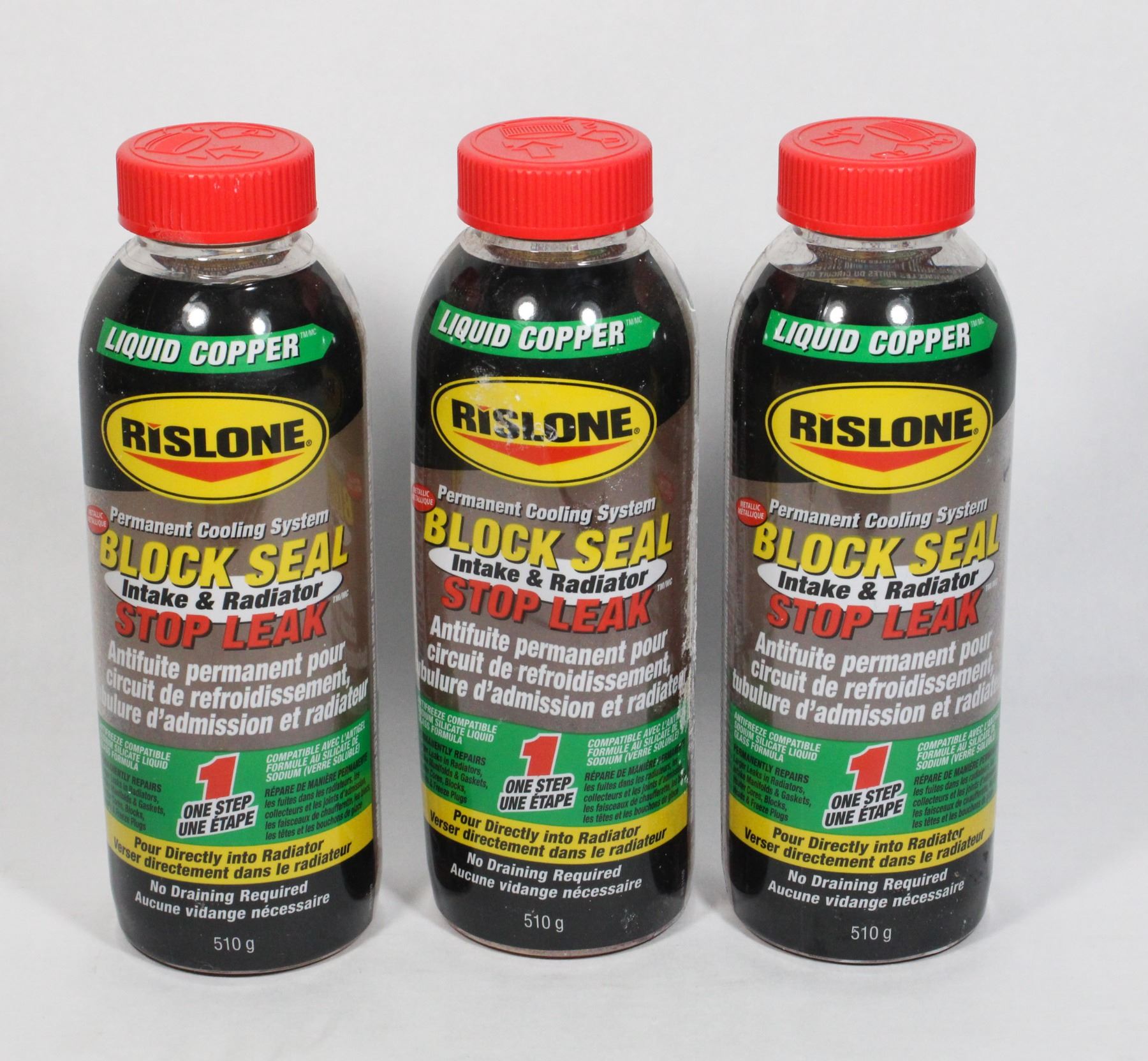 COOLING SYSTEM BLOCK SEAL INTAKE & RADIATOR STOP LEAK. 510G EACH. BOTTLES DAMAGED