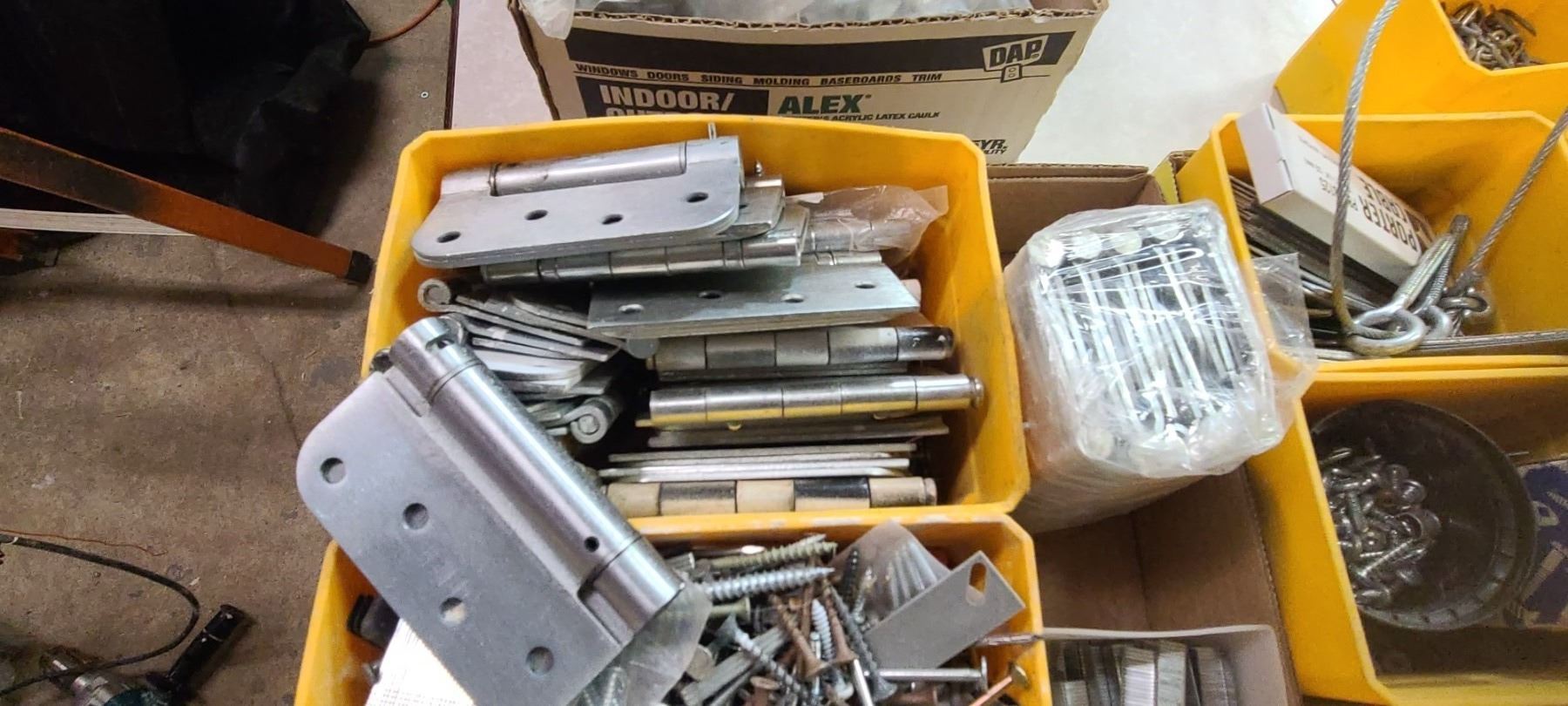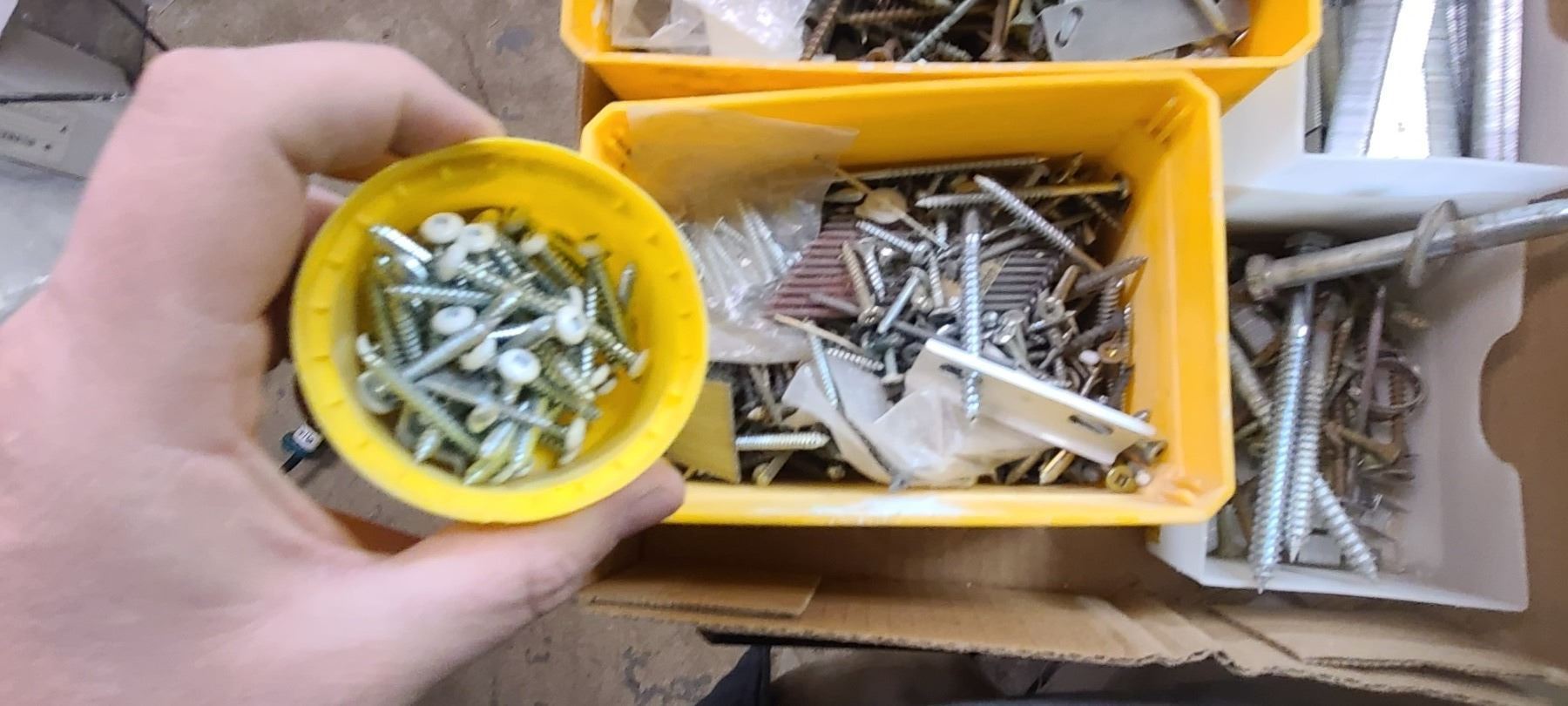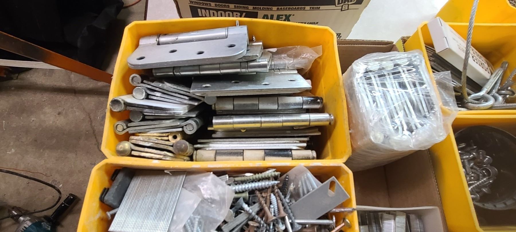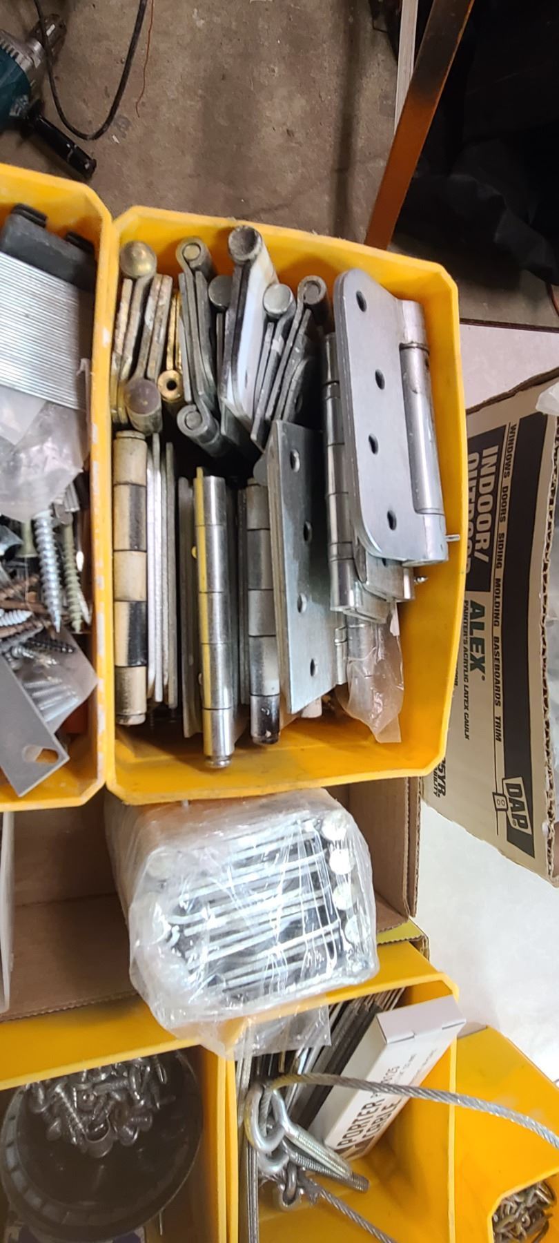 THREE BOXES HINGES AND ASSORTED SCREWS