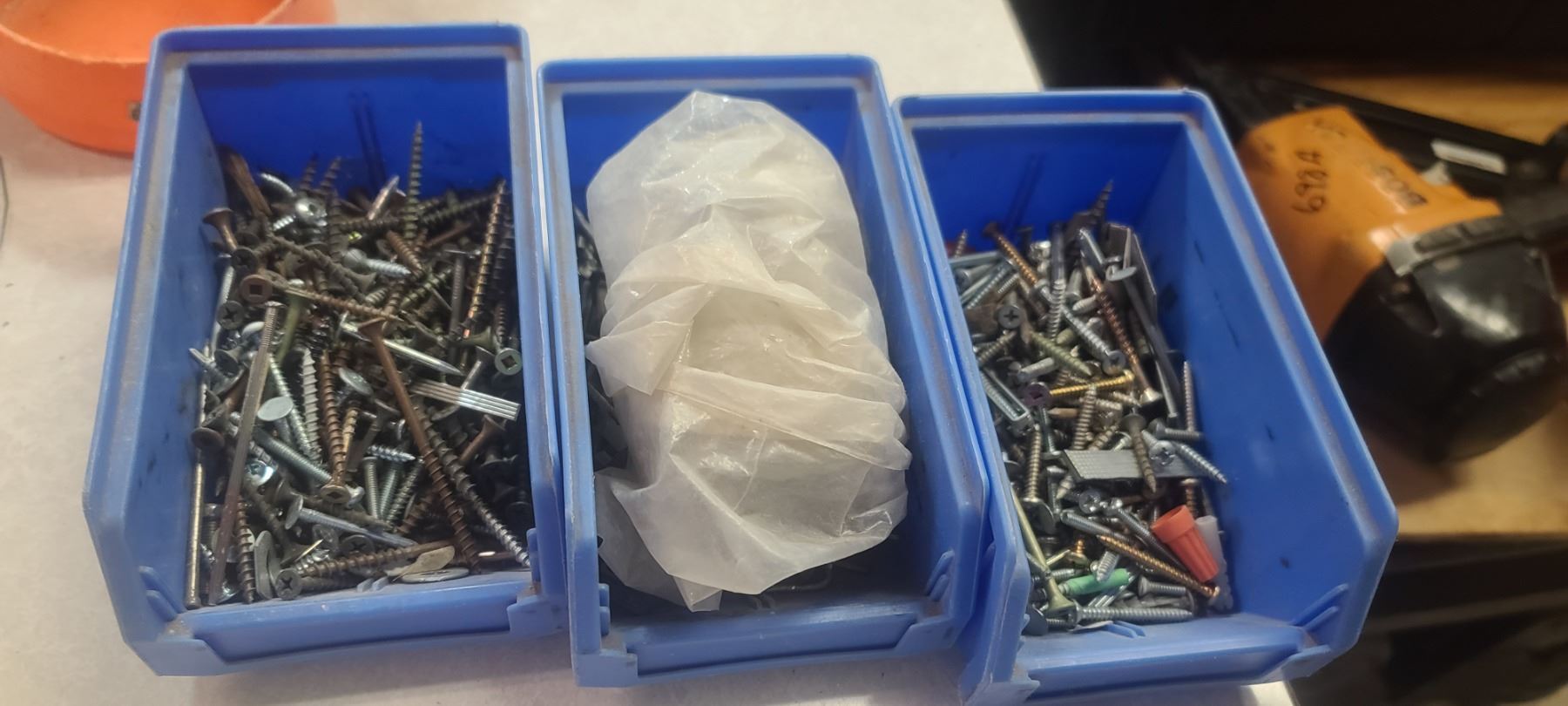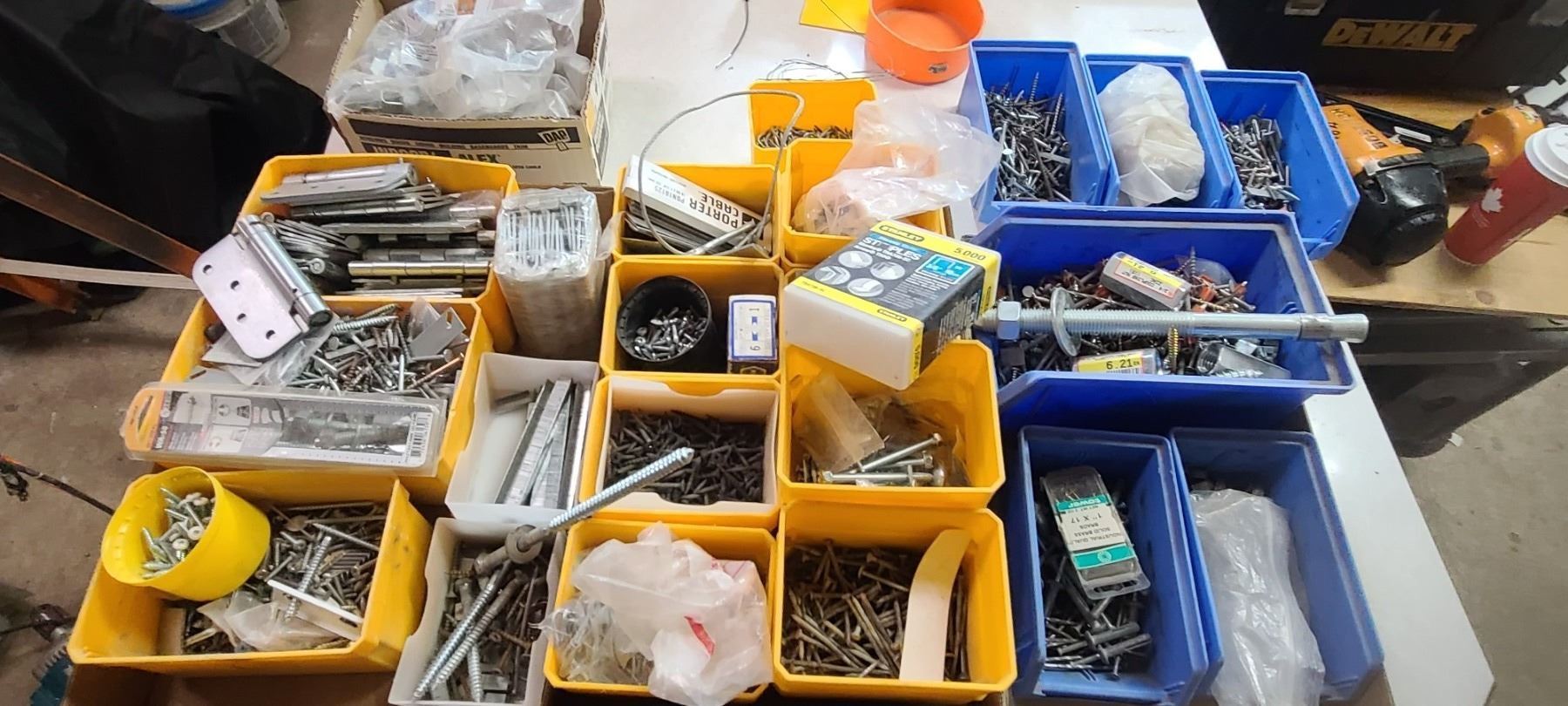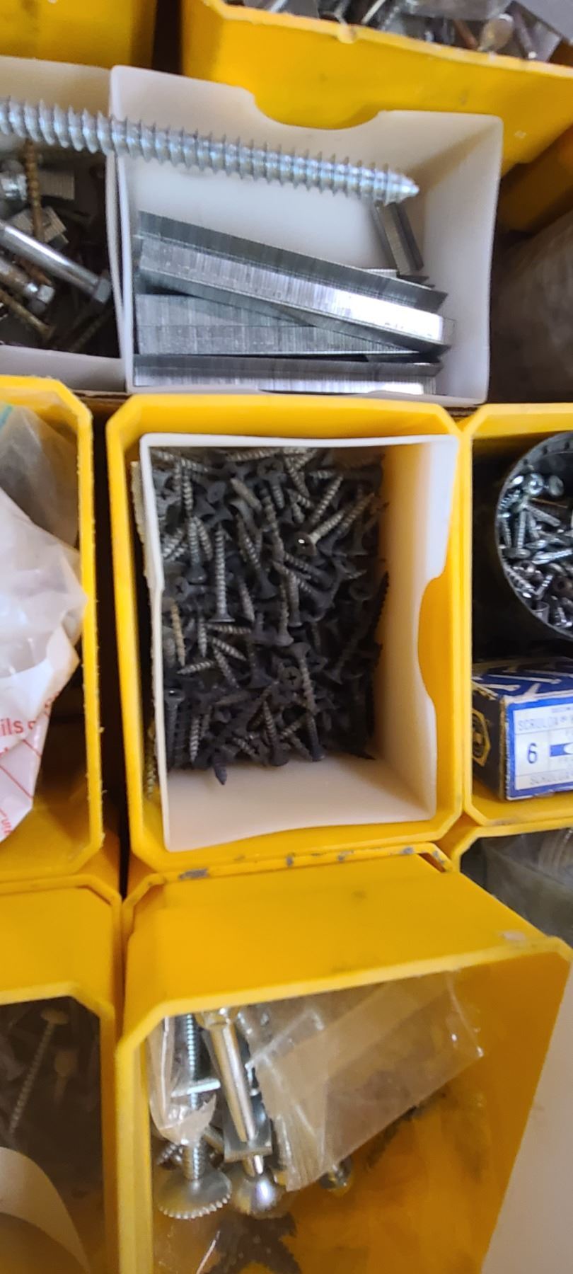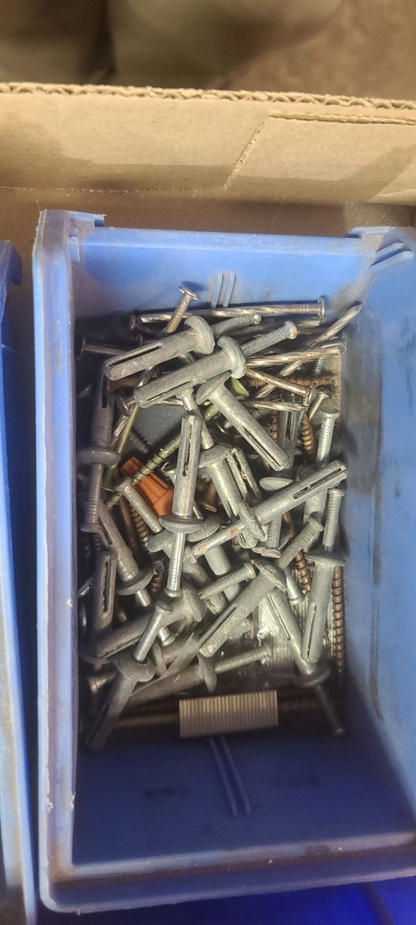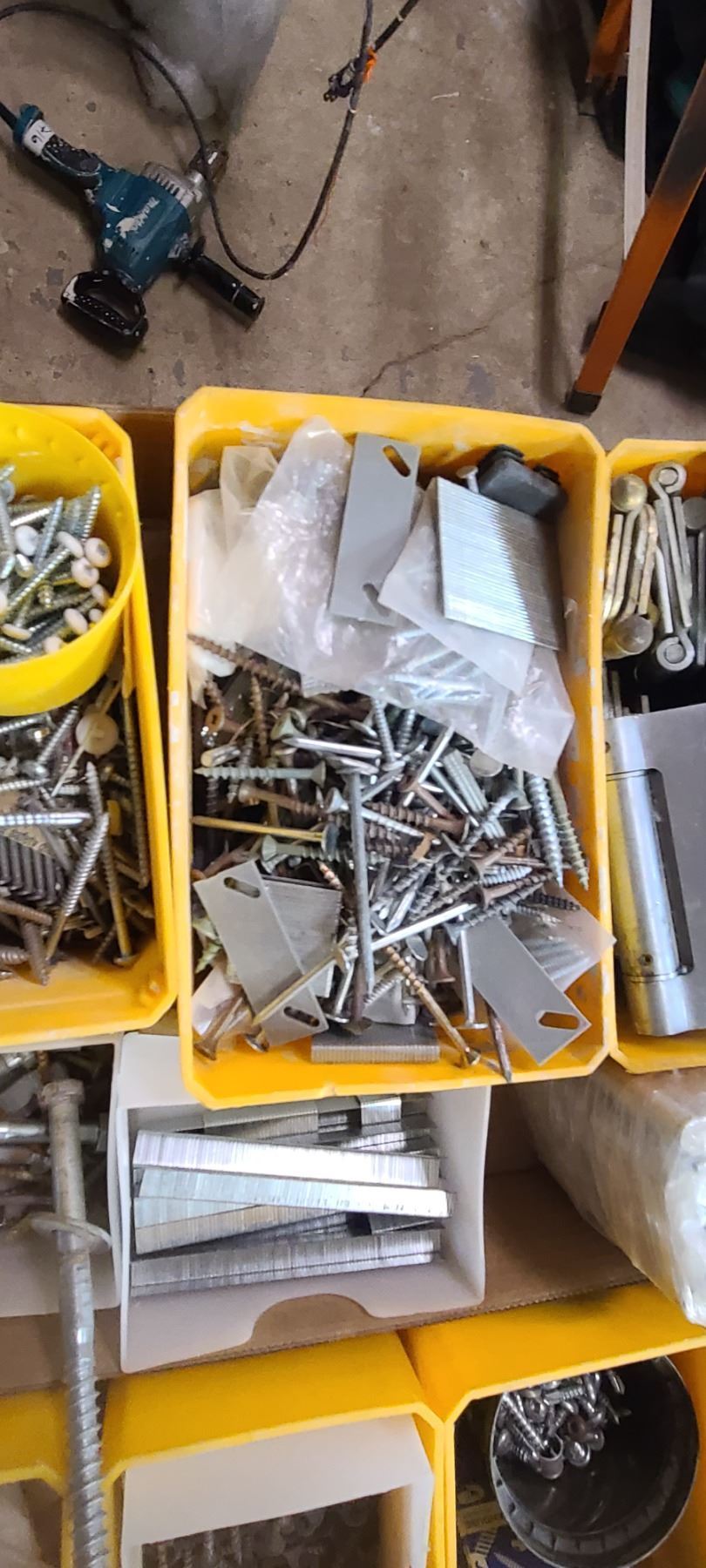 THREE BOXES HINGES AND ASSORTED SCREWS