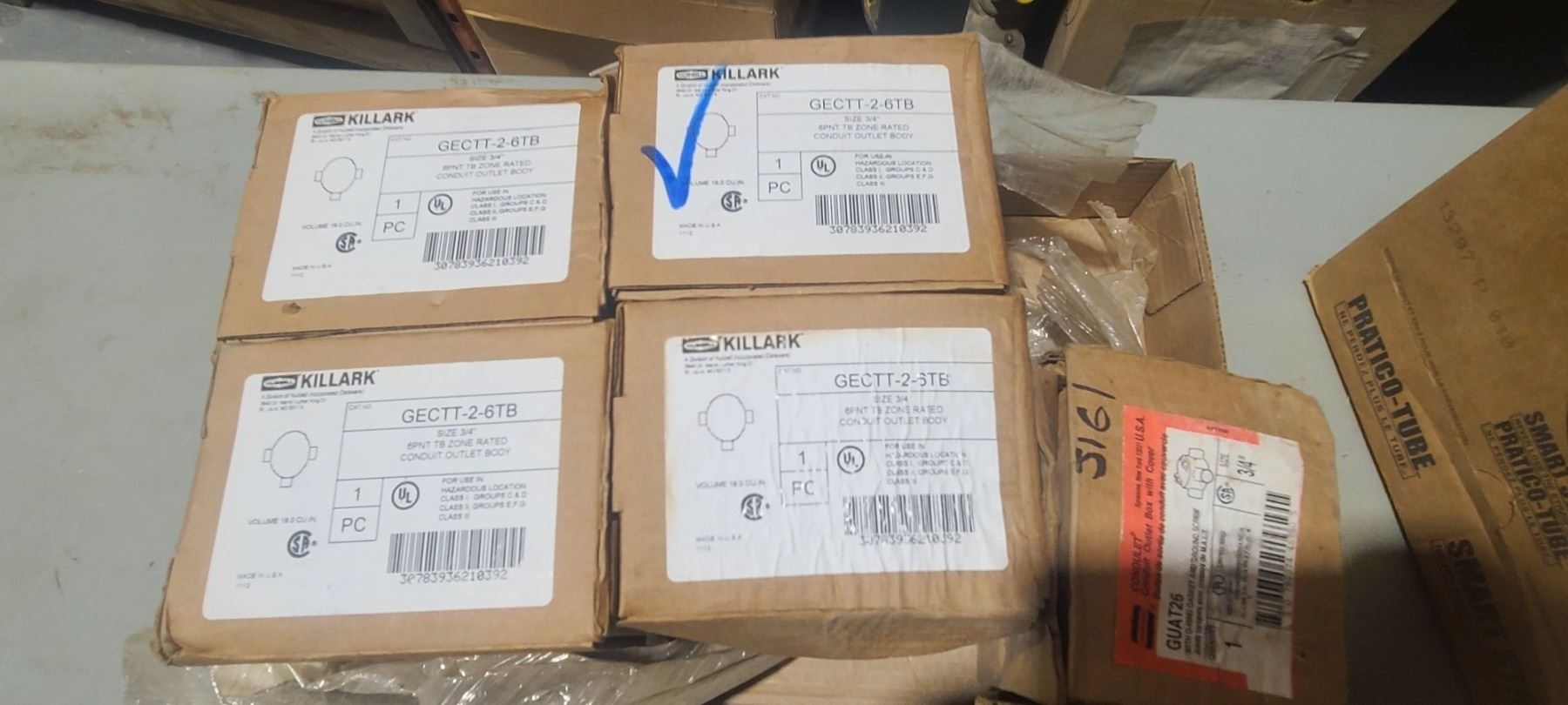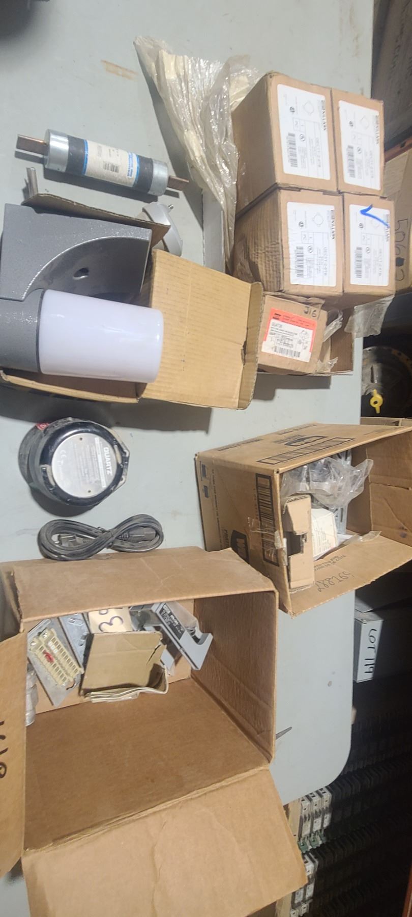 THREE BOXES OF ELECTRICAL SUPPLIES, TEMPRATURE SENSOR ECT.