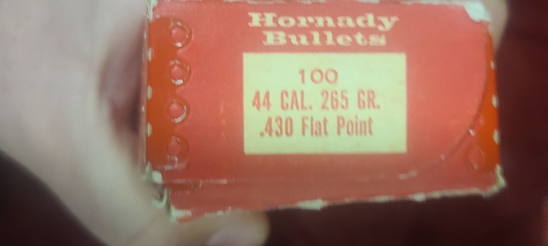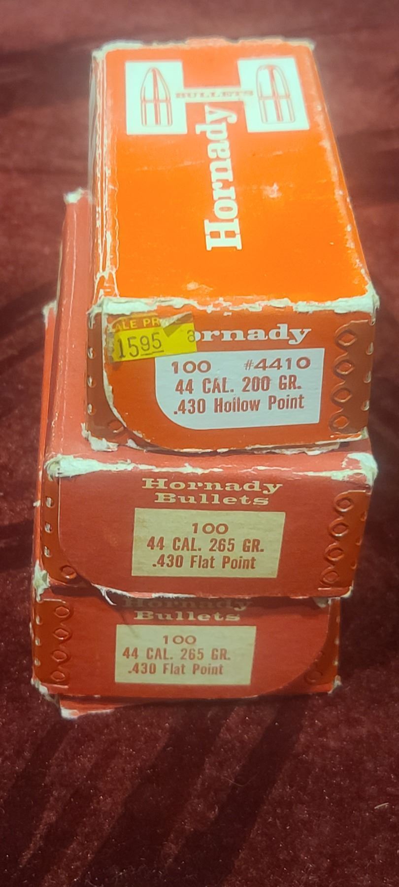 THREE BOXES OF HORNADY .44CAL 265GR. FLAT POINT BULLETS AND PARTIAL BOX OF HORNADY .44CAL 200GR. HOLLOW POINT