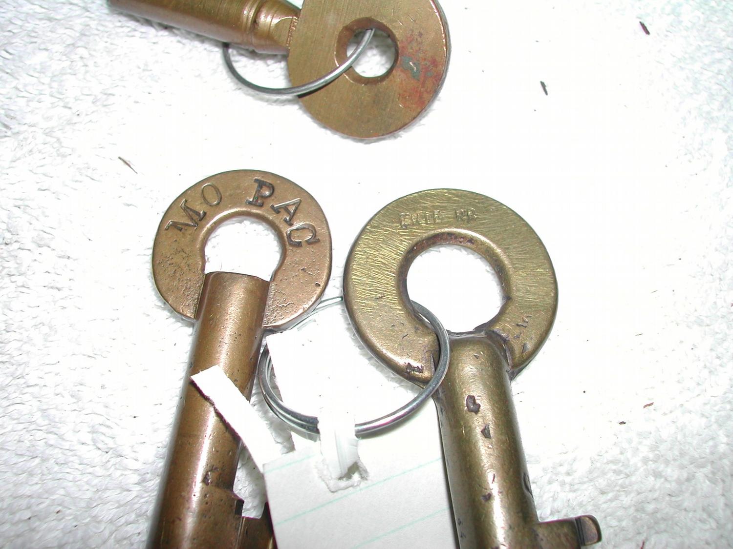THREE BRASS KEYS: ERIE RR, NO NAME, MO PAC