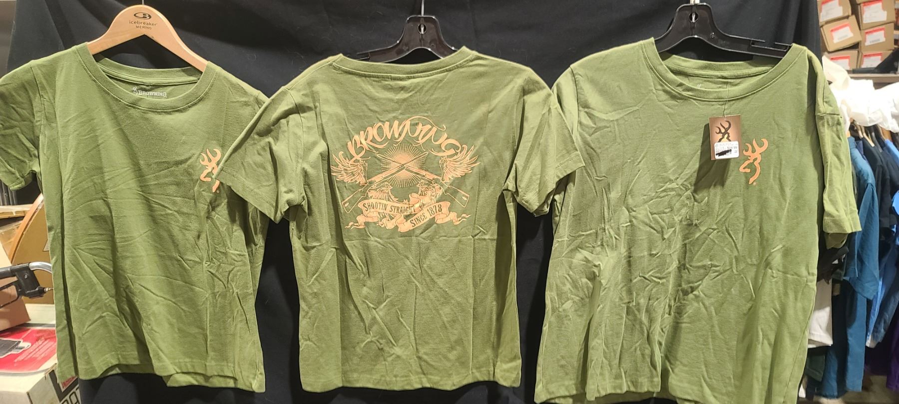 THREE BROWNING WOMENS SHIRTS, ONE SM, ONE ME, AND ONE LRG