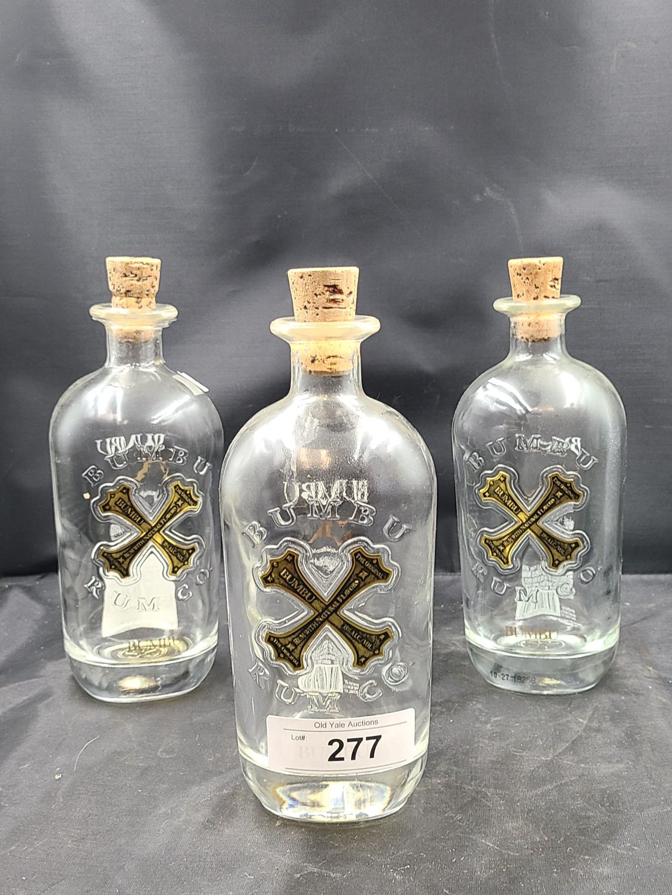 THREE BUMBU EMBOSSED RUM BOTTLES