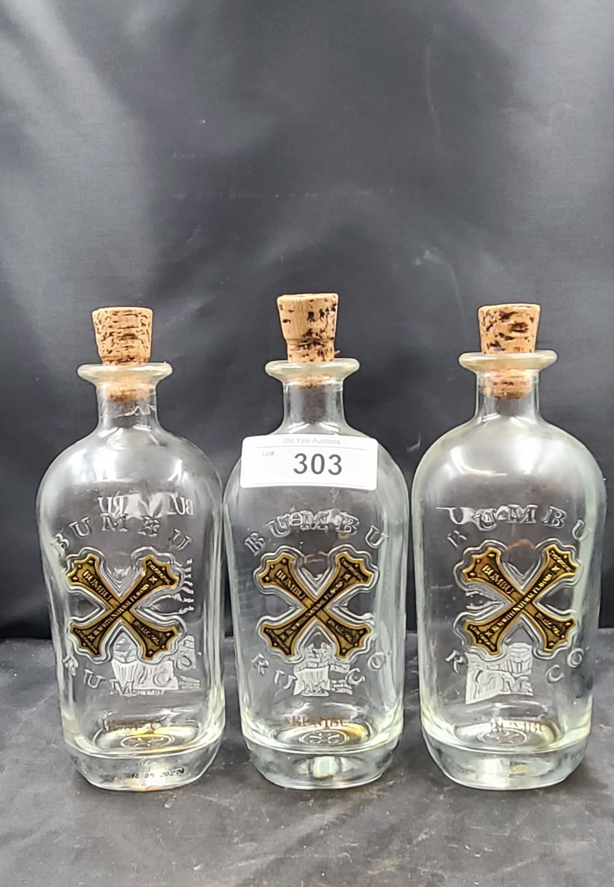 THREE BUMBU EMBOSSED RUM BOTTLES
