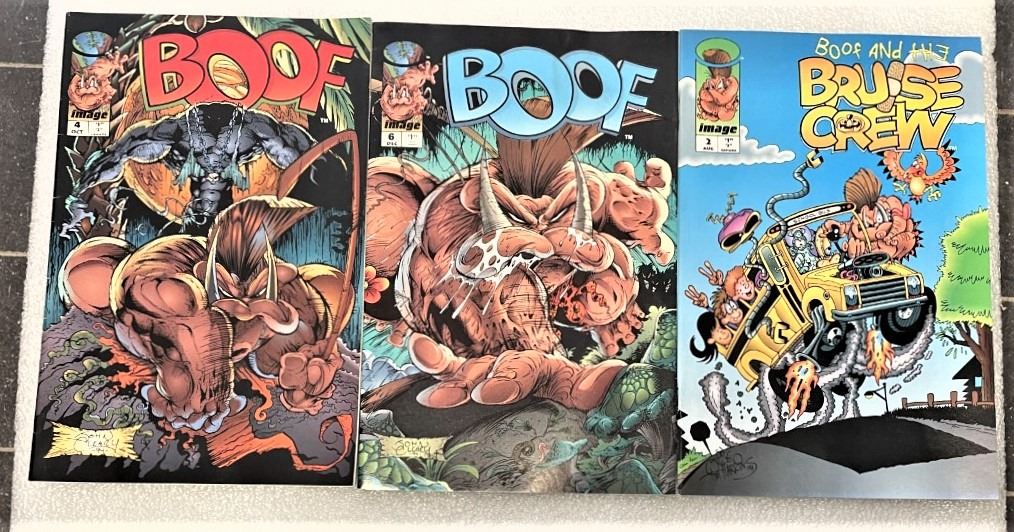THREE Boof Comics , Damage on back cover of the Dec issue