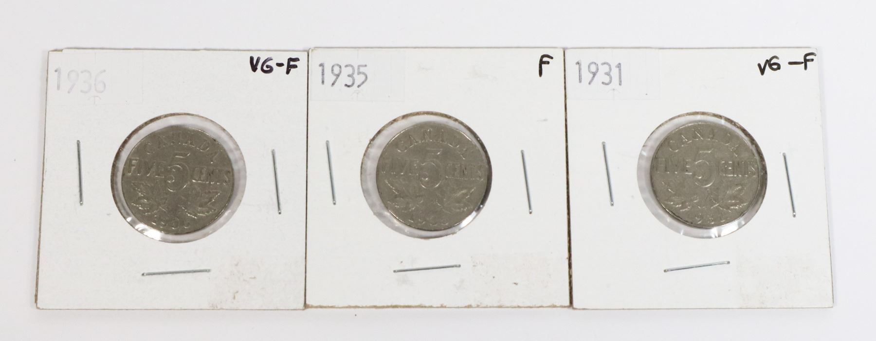 THREE CANADA 5 CENT 1931, 1935, 1937
