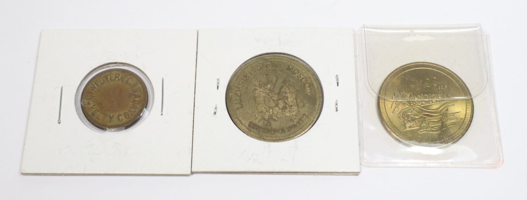 THE CENTURY 1972 (1900-2000) MOSCOW TOKEN, WESTERN CANADA NOVELTY CO 5 CENT, AND 1905-2005 ALBERTA CENTENNIAL STUDENTS TOKEN