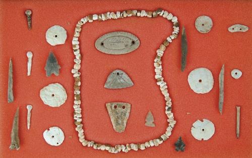 THREE CASES OF BONE, SHELL AND STONE ARTIFACTS