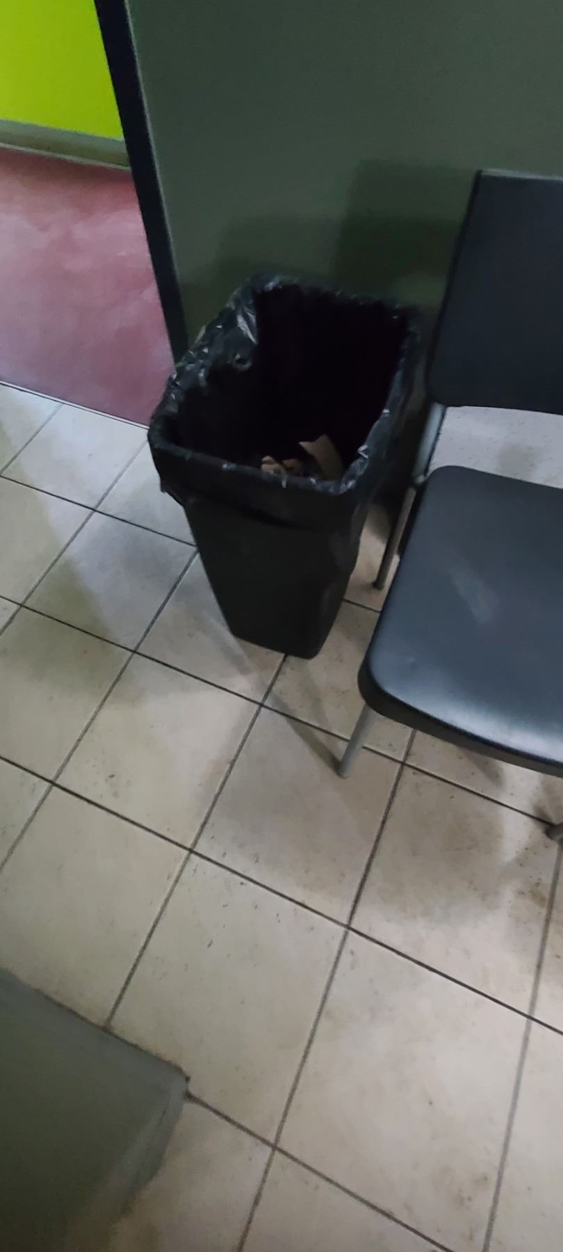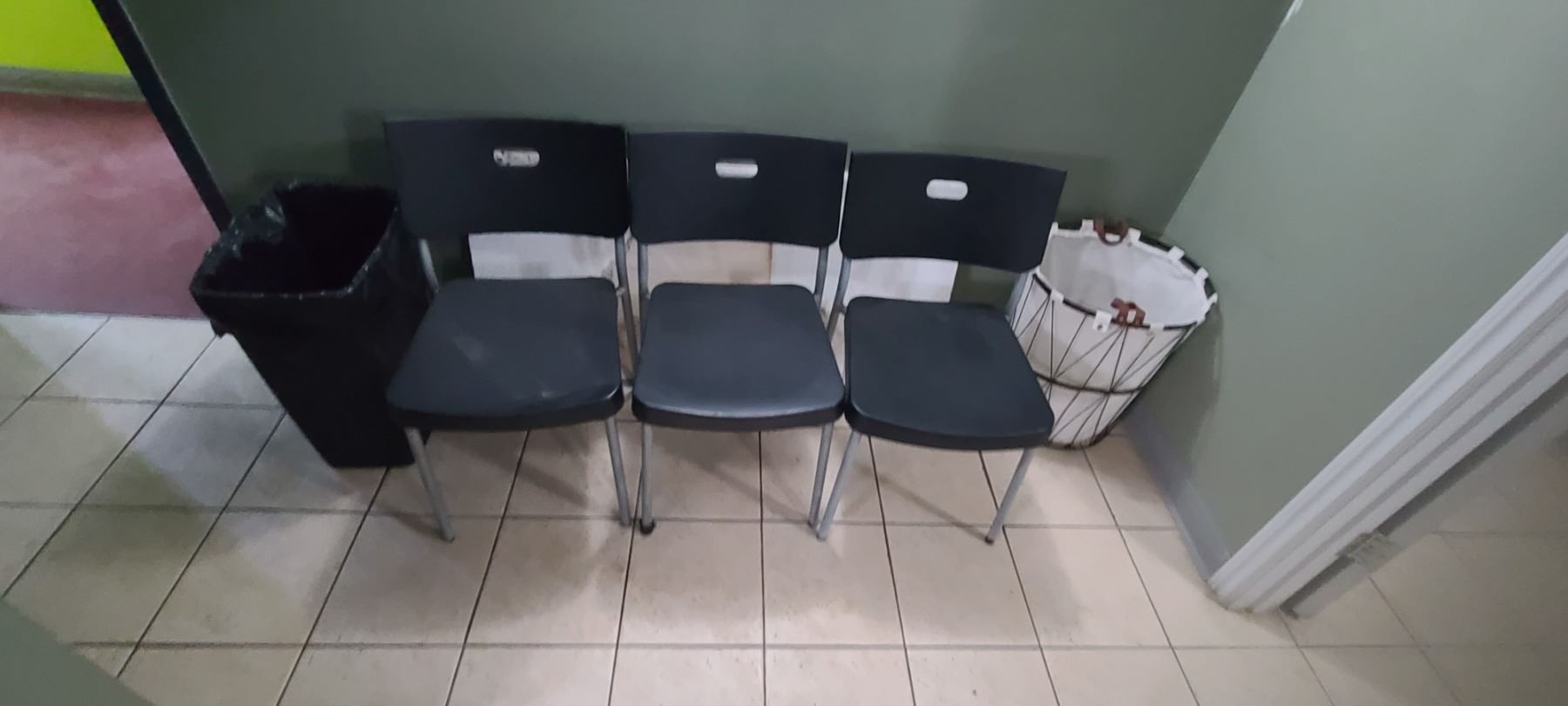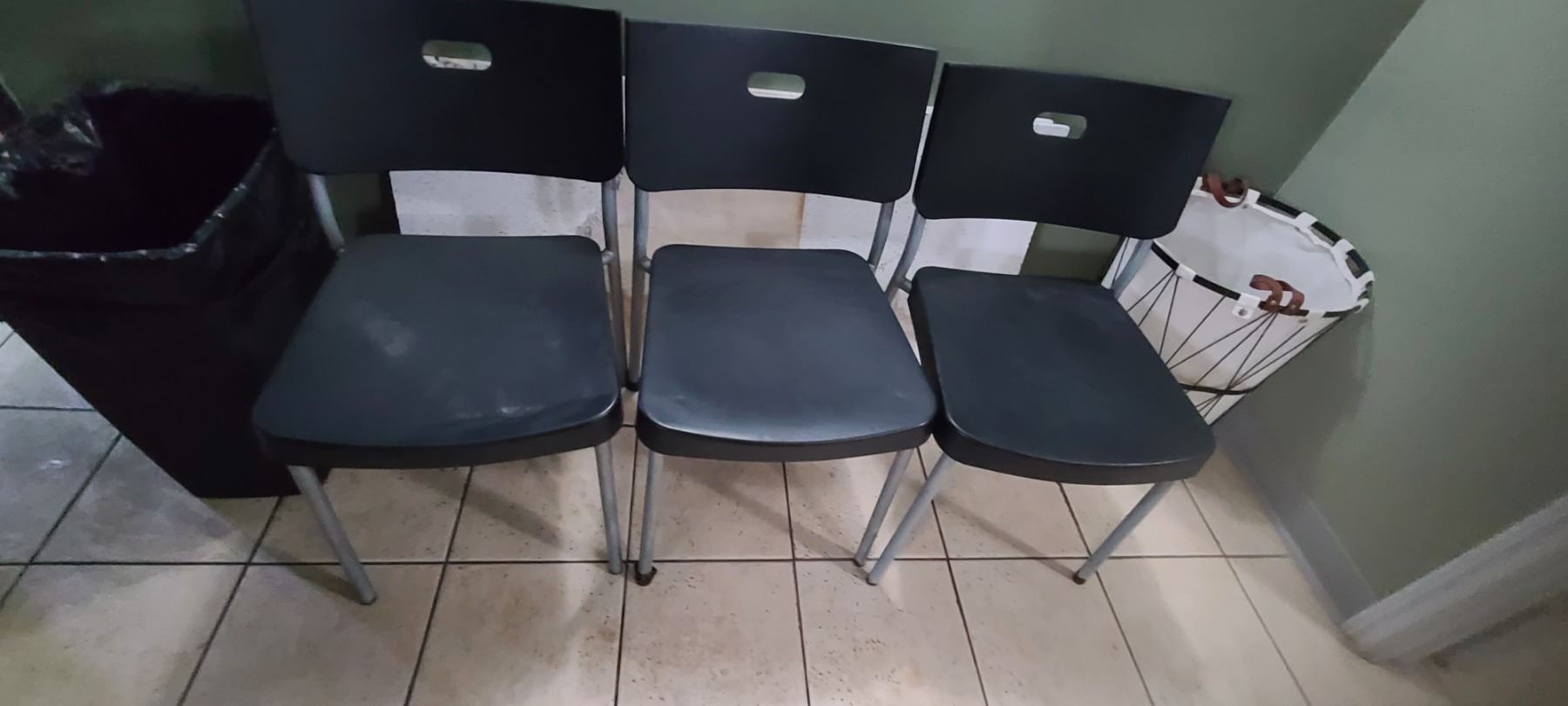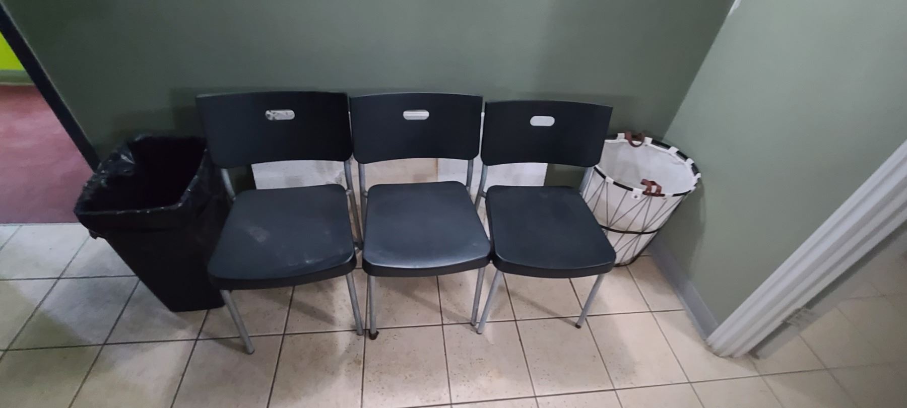 THREE CHAIRS AND A TRASH CAN