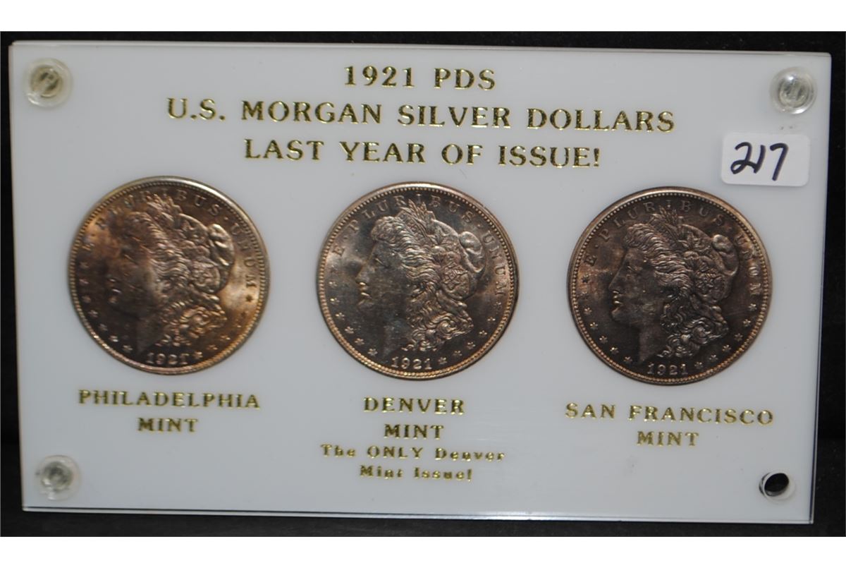 THREE COIN SET - 1921 P, D & S MORGAN DOLLARS - LAST YEAR OF ISSUE! SOLD PER COIN TIMES 3