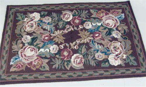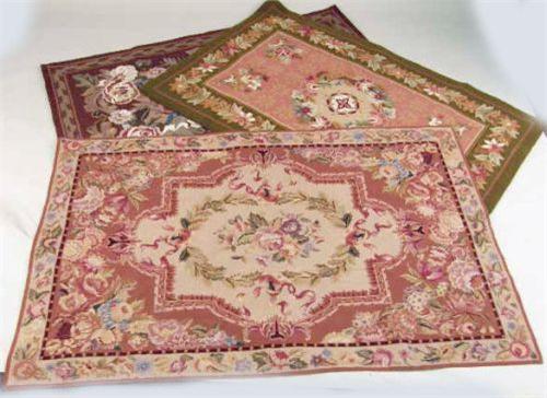 Including one needlepoint and two hooked rugs. 5`10 1/2"l x 3`9 1/2"w, 5`5 1/2"l x 3`6"w, 5`6 1/2"l x 3`6 1/2"w