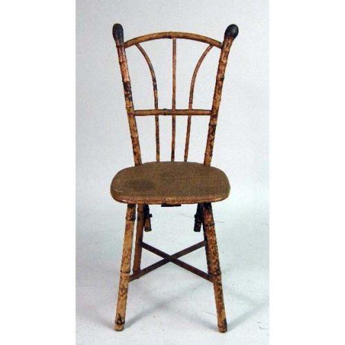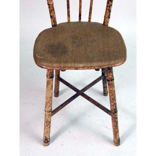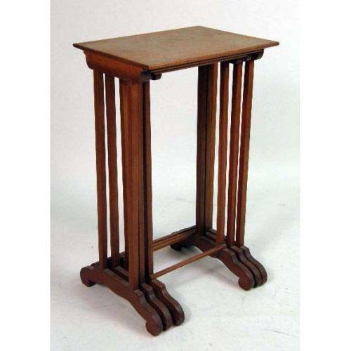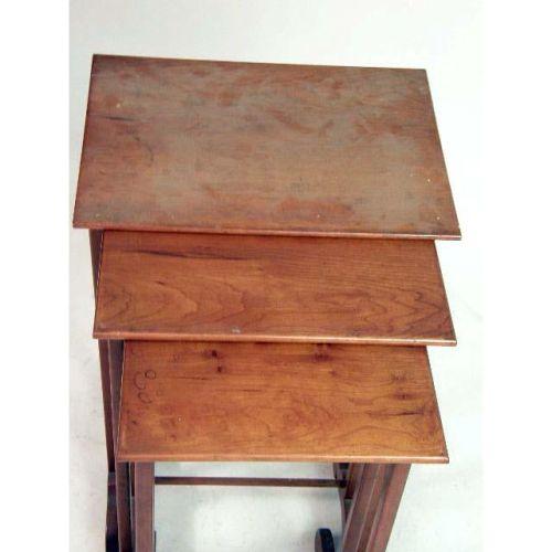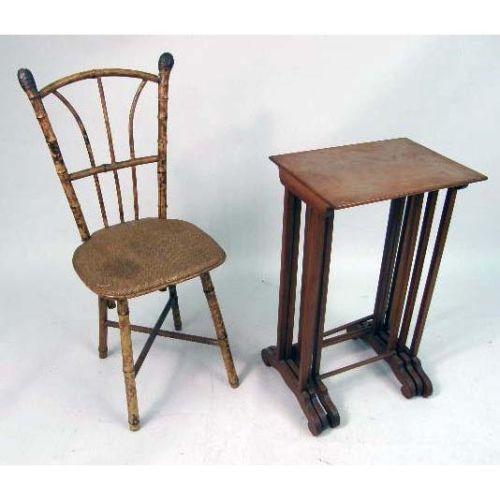 THREE CONTEMPORARY NESTING TABLES<BR><BR>Together with a bamboo and rattan side chair. The largest table 28" h x 17" w x 12" d. Tops with some stains and scratches, the largest with sun bleaching. 4 pieces.