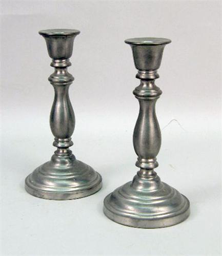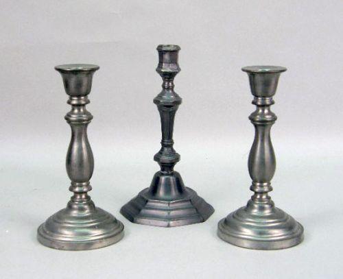One a pair, marked "Pewter by Connecticut House Pewterers/Handcrafted", the third single stick marked simply "Pewter". Each approximately 8 1/2"h